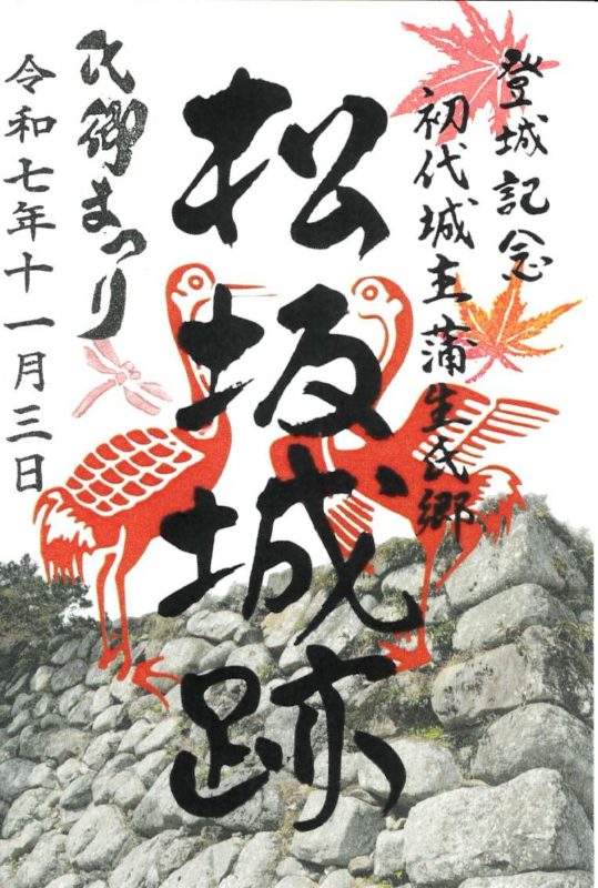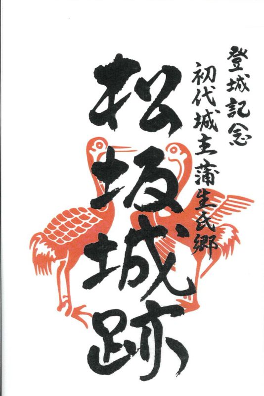 蒲生氏の家紋「対(むかい)鶴」と城郭名が印刷されている。