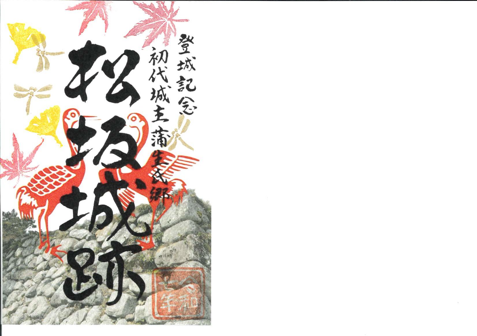 蒲生氏の家紋「対(むかい)鶴」と城郭名が印刷されている。