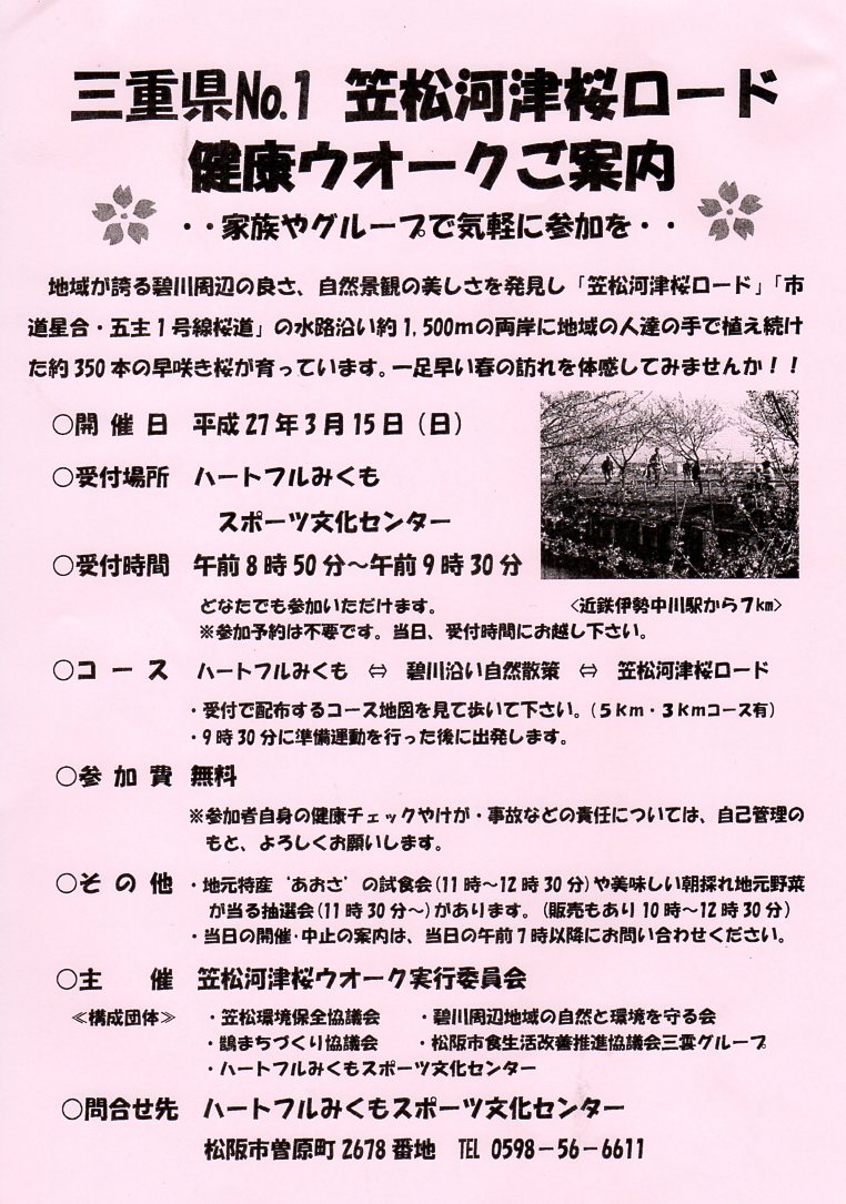 平成27年3月15日 笠松河津桜ロード健康ウォーク