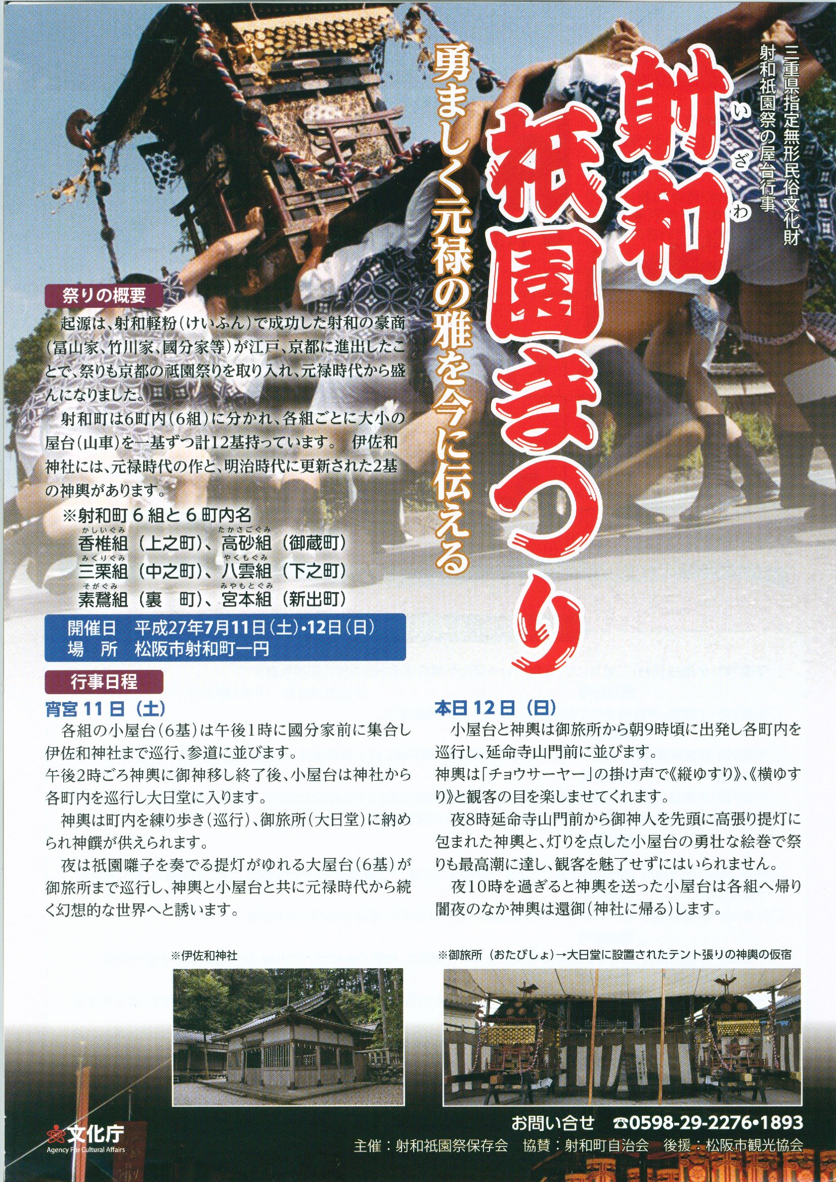 お問合せ/射和ぎおん祭保存会 0598-29-2276、1893