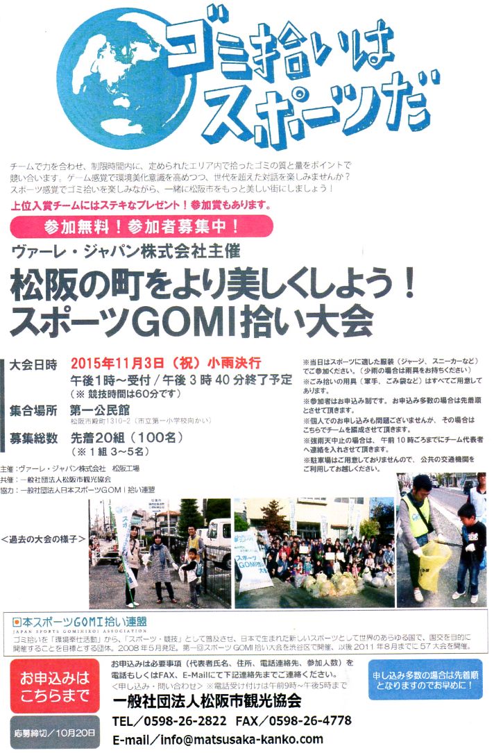 スポーツ感覚でゴミ拾いを楽しみながら、一緒に松阪市をもっと美しい街にしませんか?