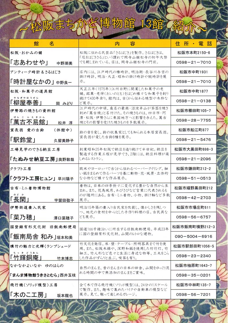 お問い合わせ先:松阪市歴史民俗資料館