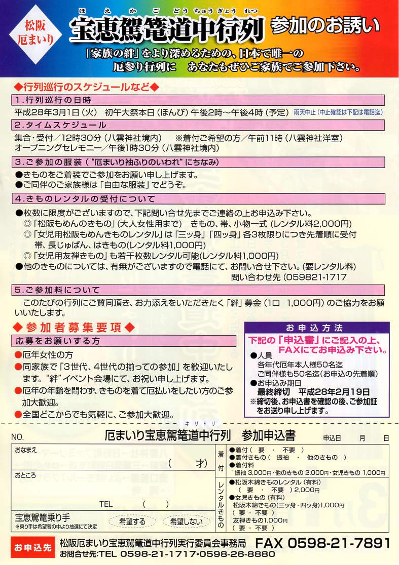 平成28年 初午まつりの交通規制、宝恵駕籠道中行列
