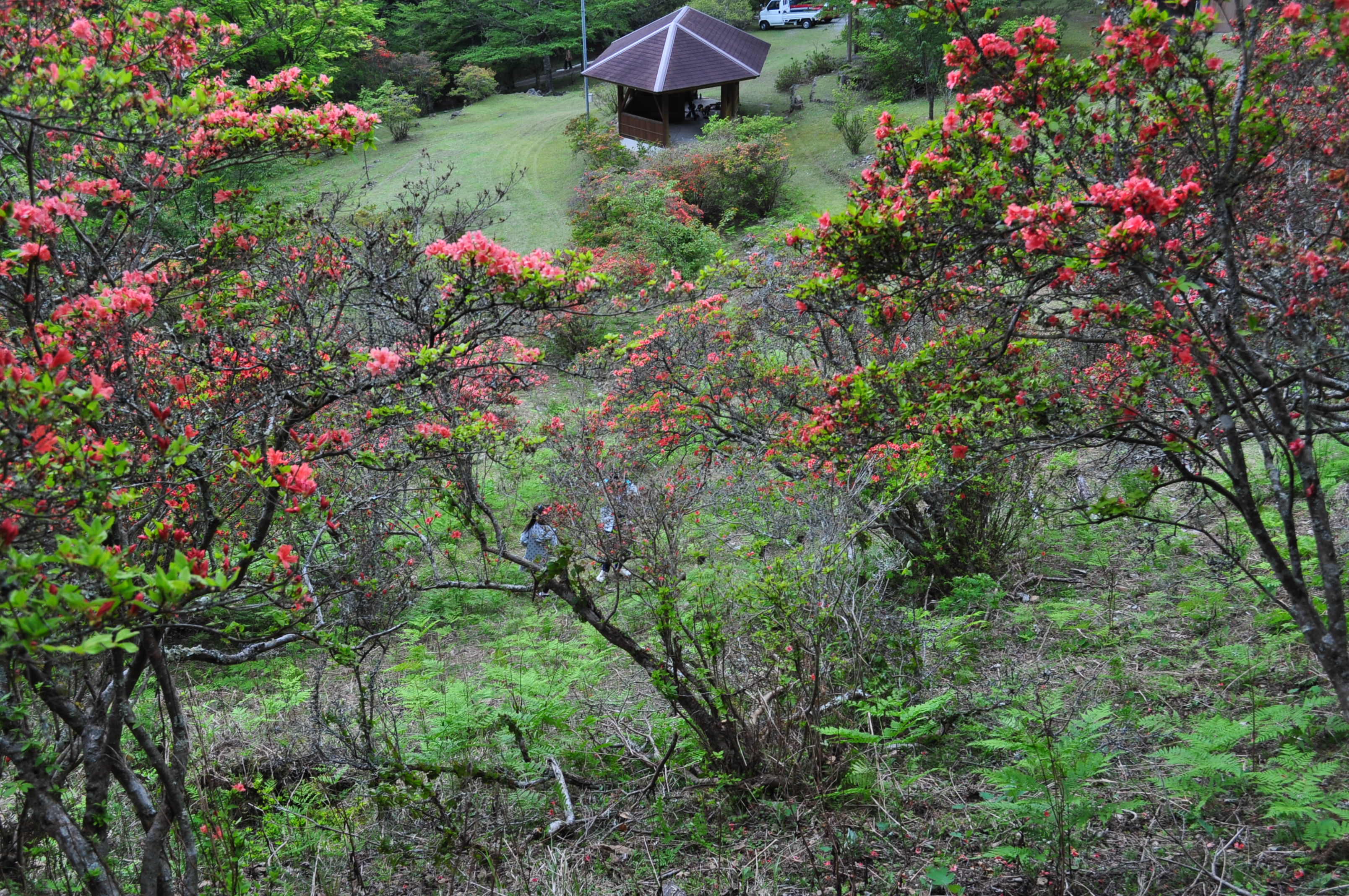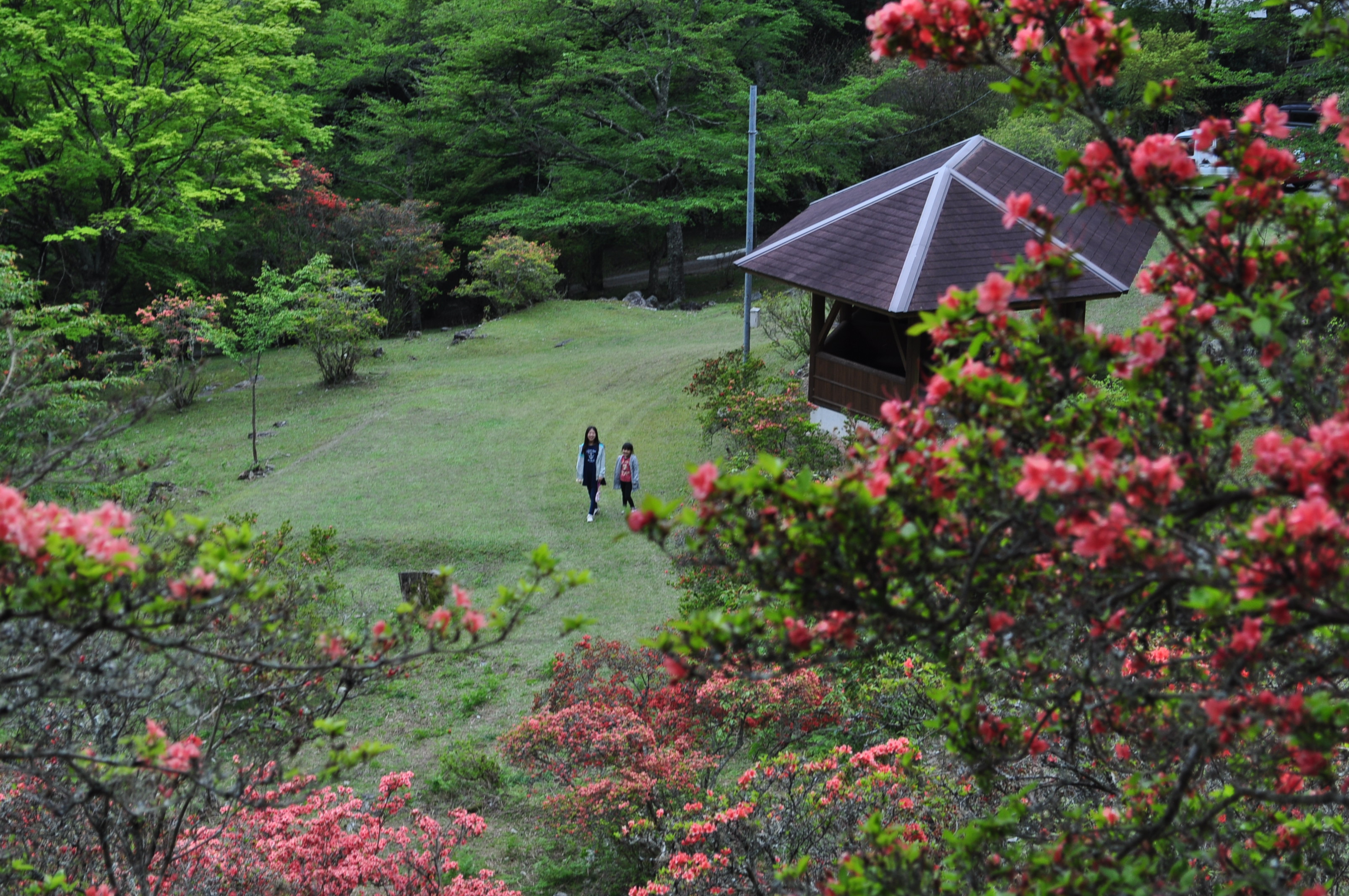 ツツジの名所として知られ4月下旬には数千株のツツジが山を彩ります。