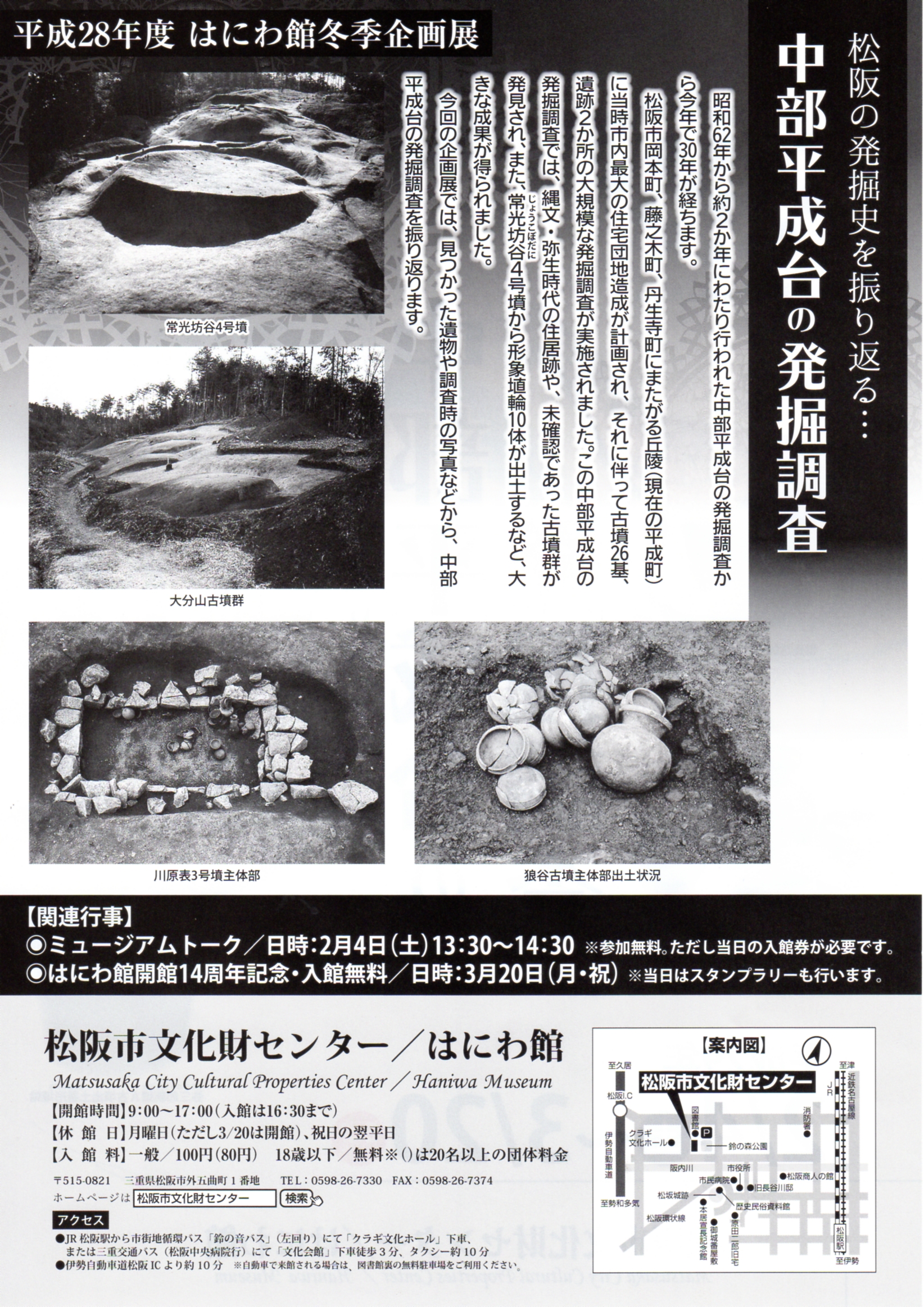 2017年2月4日(土)~3月20日(月・祝)はにわ館冬季企画展「中部平成台の発掘調査」