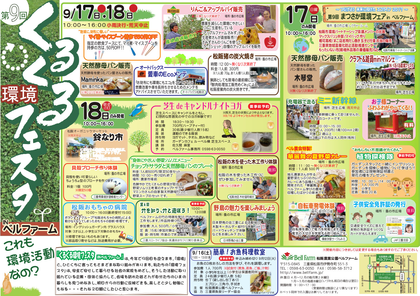 台風18号の影響により、9/17(日)開催予定の『第9回くるくる環境フェスタ1日目』は中止になりました。