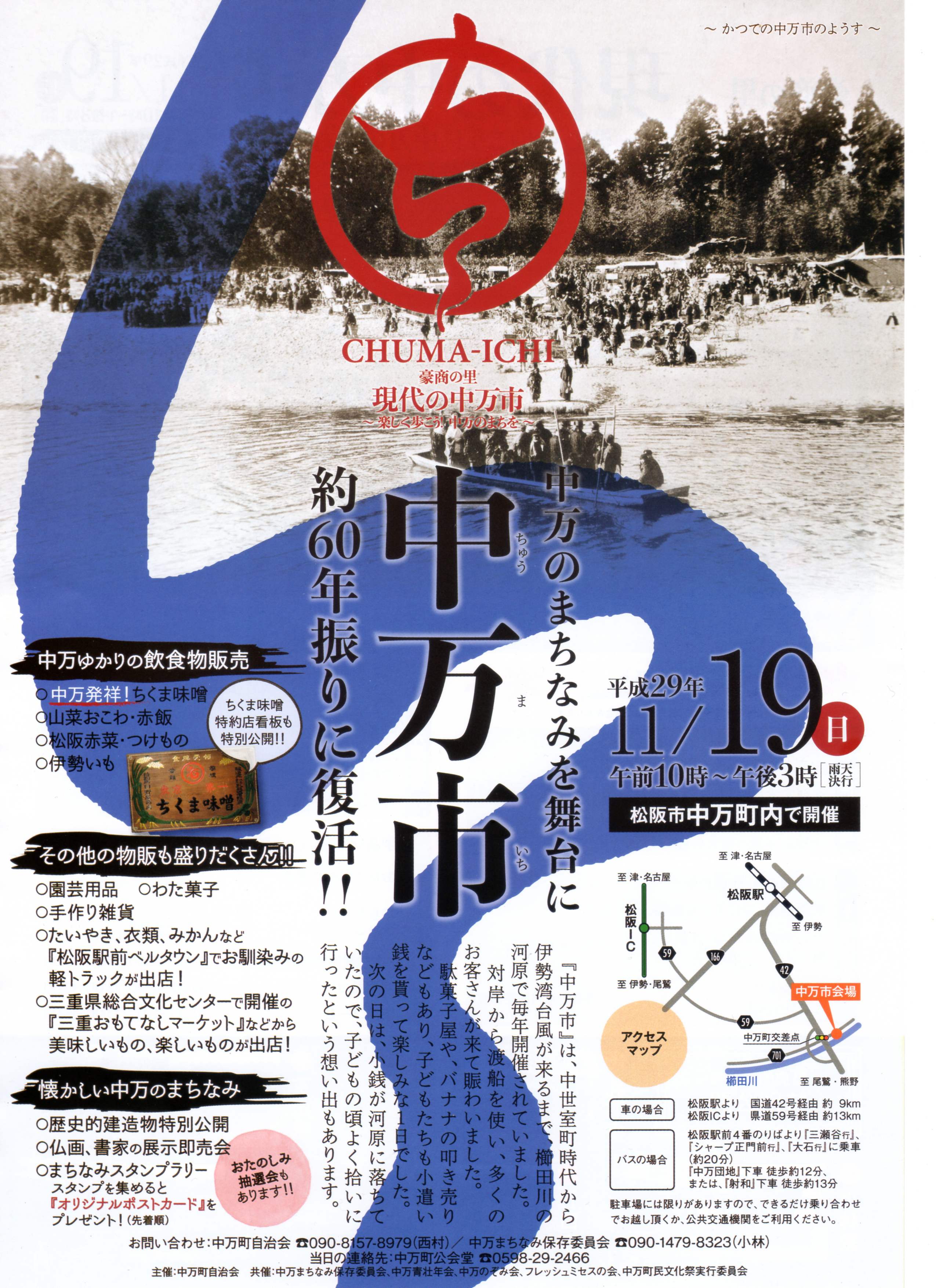 ●問合せ先 中万町自治会:090-8157-8979(西村)/中万まちなみ保存委員会:090-1479-8323(小林)/当日の連絡先:中万町公会堂 0598-29-2466