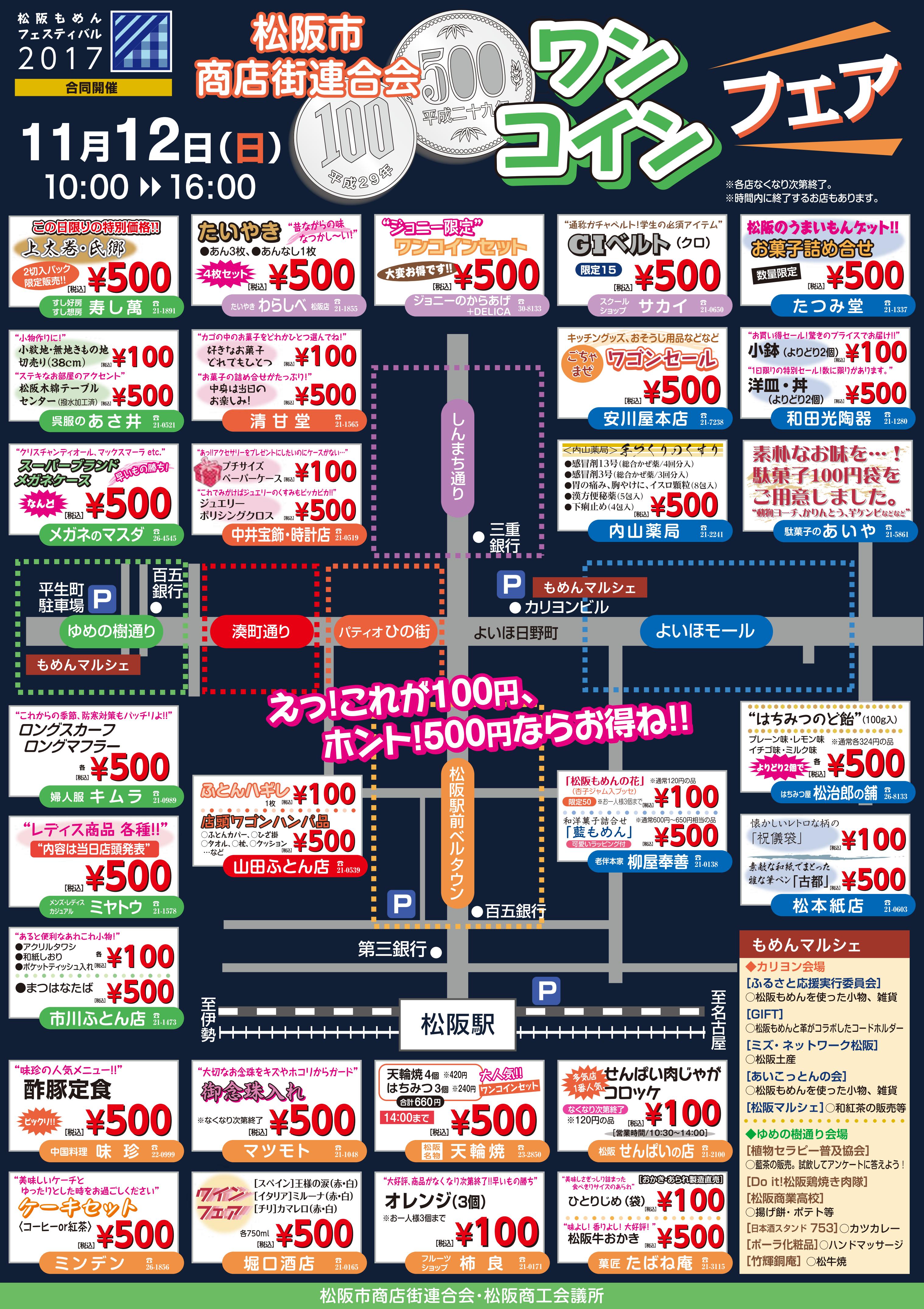 2017年11月12日(日)■松阪もめんフェスタ■ワンコイン商店街 同日開催!