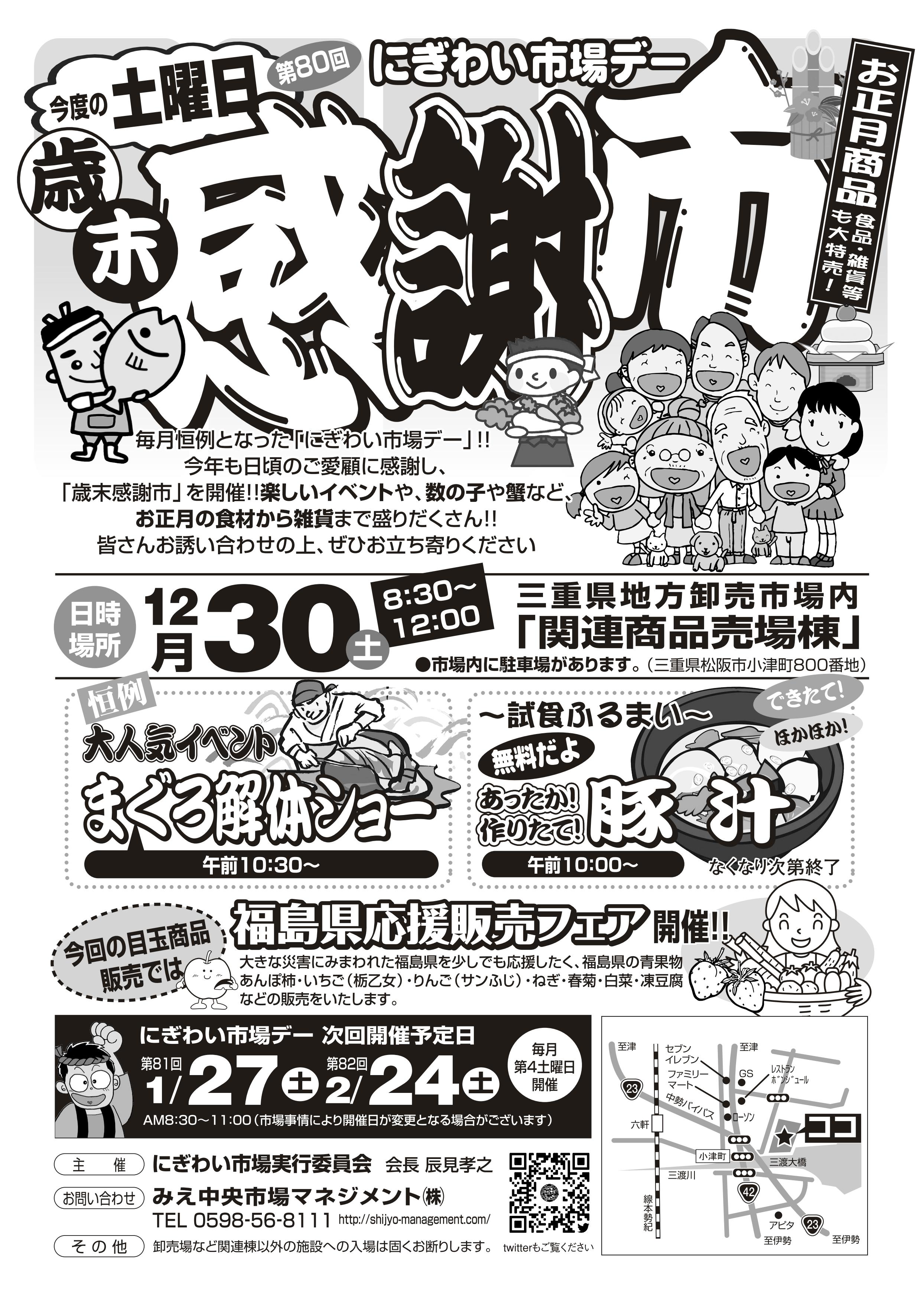 場所:三重県地方卸売市場内「関連商品売場棟」松阪市小津町800番地