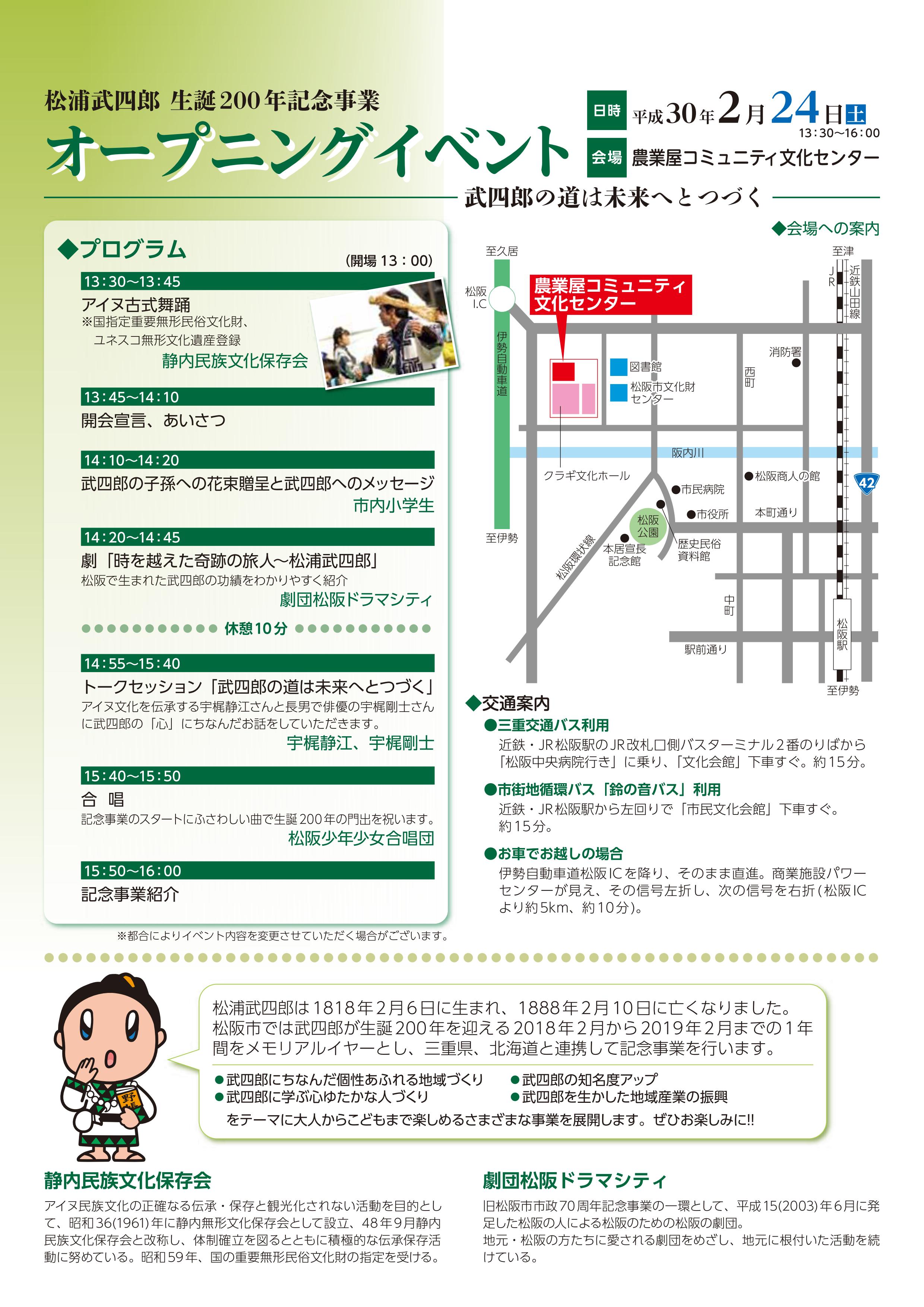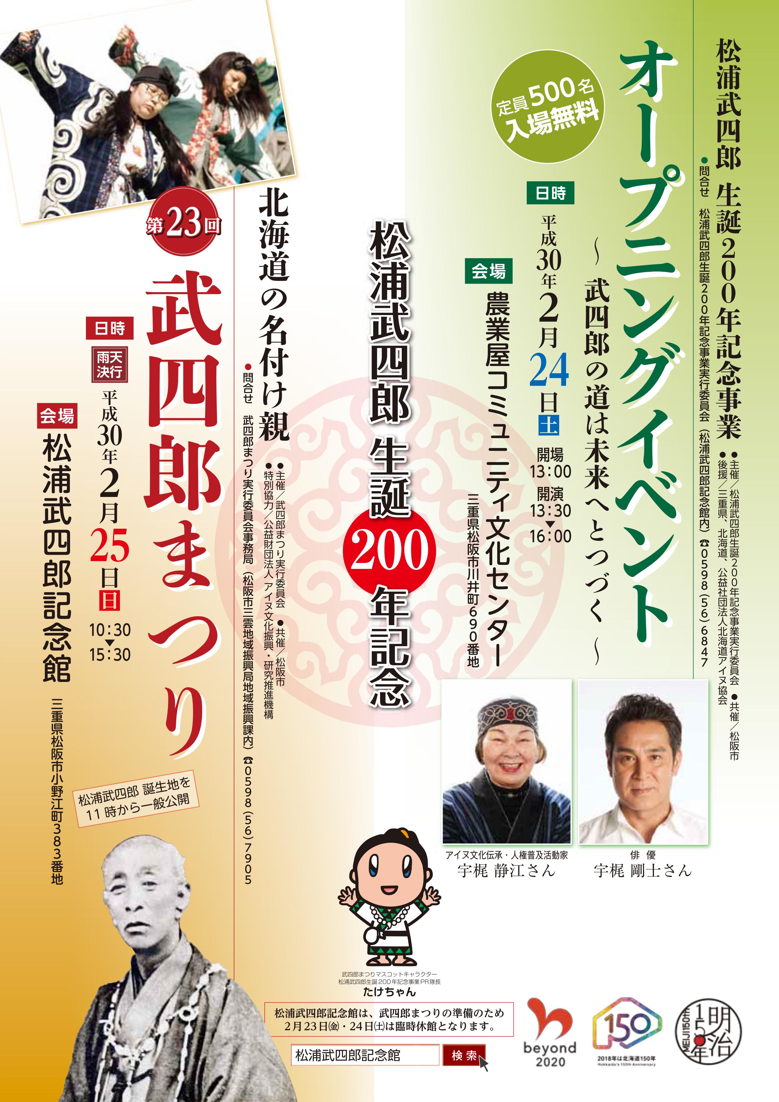 2018年2月24日・25日(土・日)松浦武四郎生誕200年記念事業・武四郎まつり