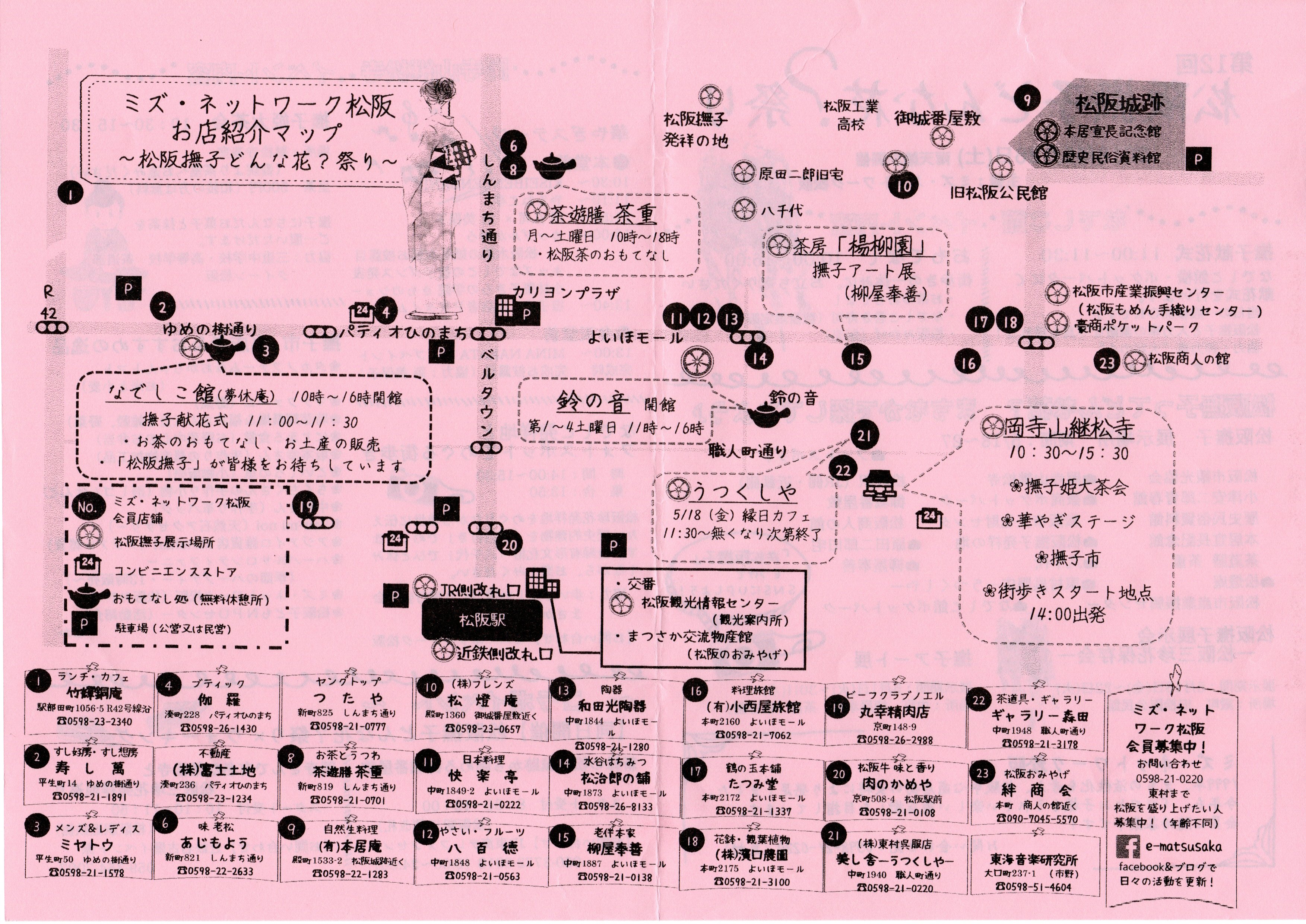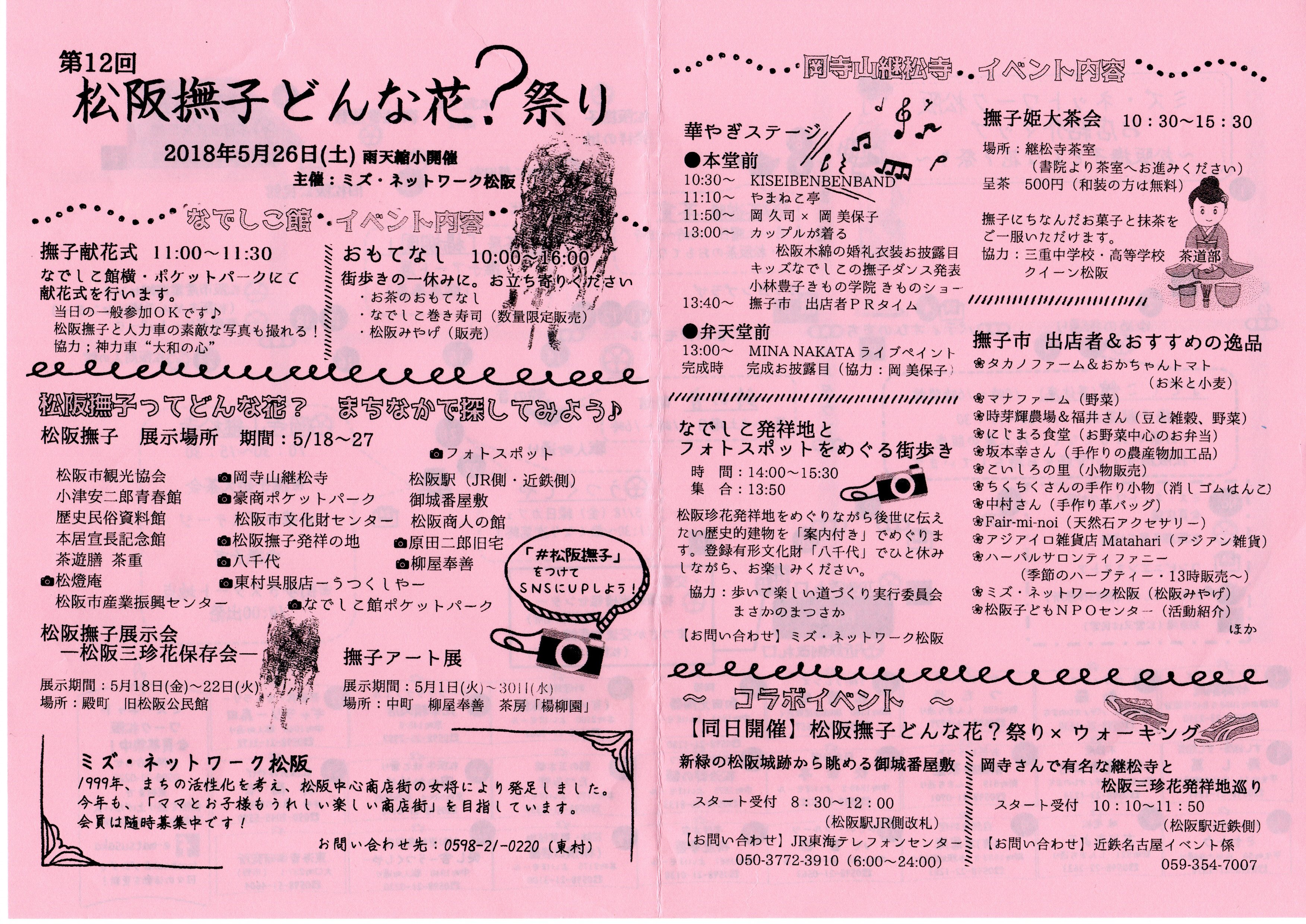 イベントスケジュール等詳細チラシ → 第12回松阪撫子どんな花?祭りチラシ 、お店紹介マップ