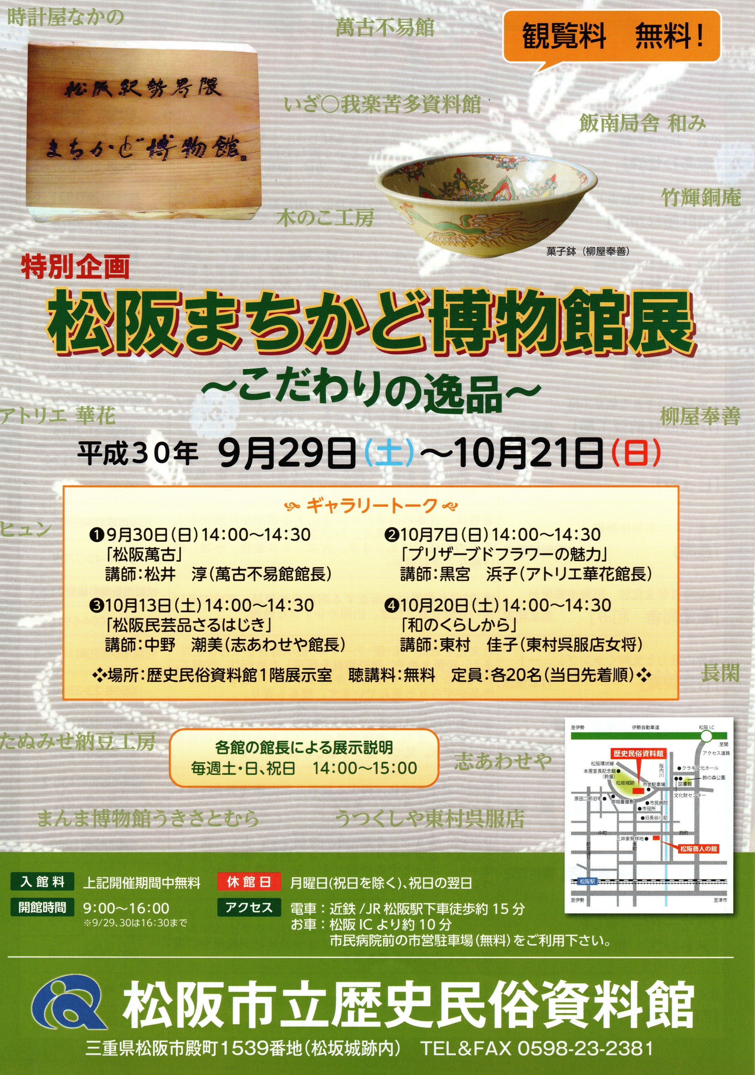 2018年9月29日(土)~10月21日(日) 特別企画 松阪まちかど博物館展~こだわりの逸品~