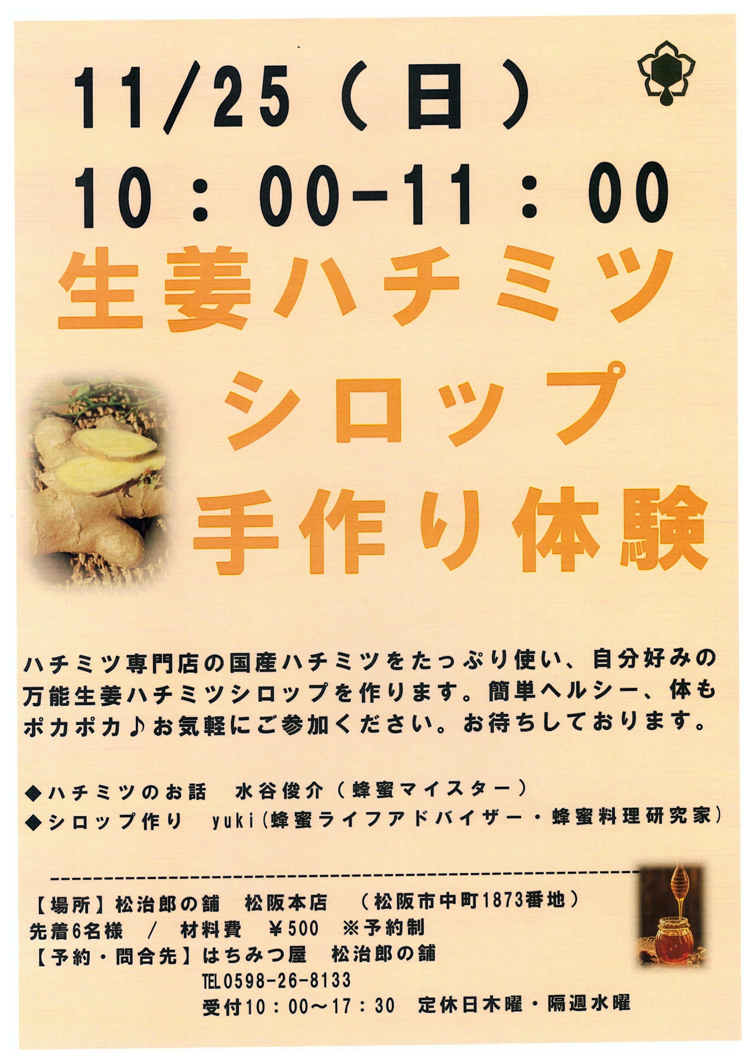 要予約 先着6名 松治郎の舗11.25イベント 松治郎の舗11.25イベント_01