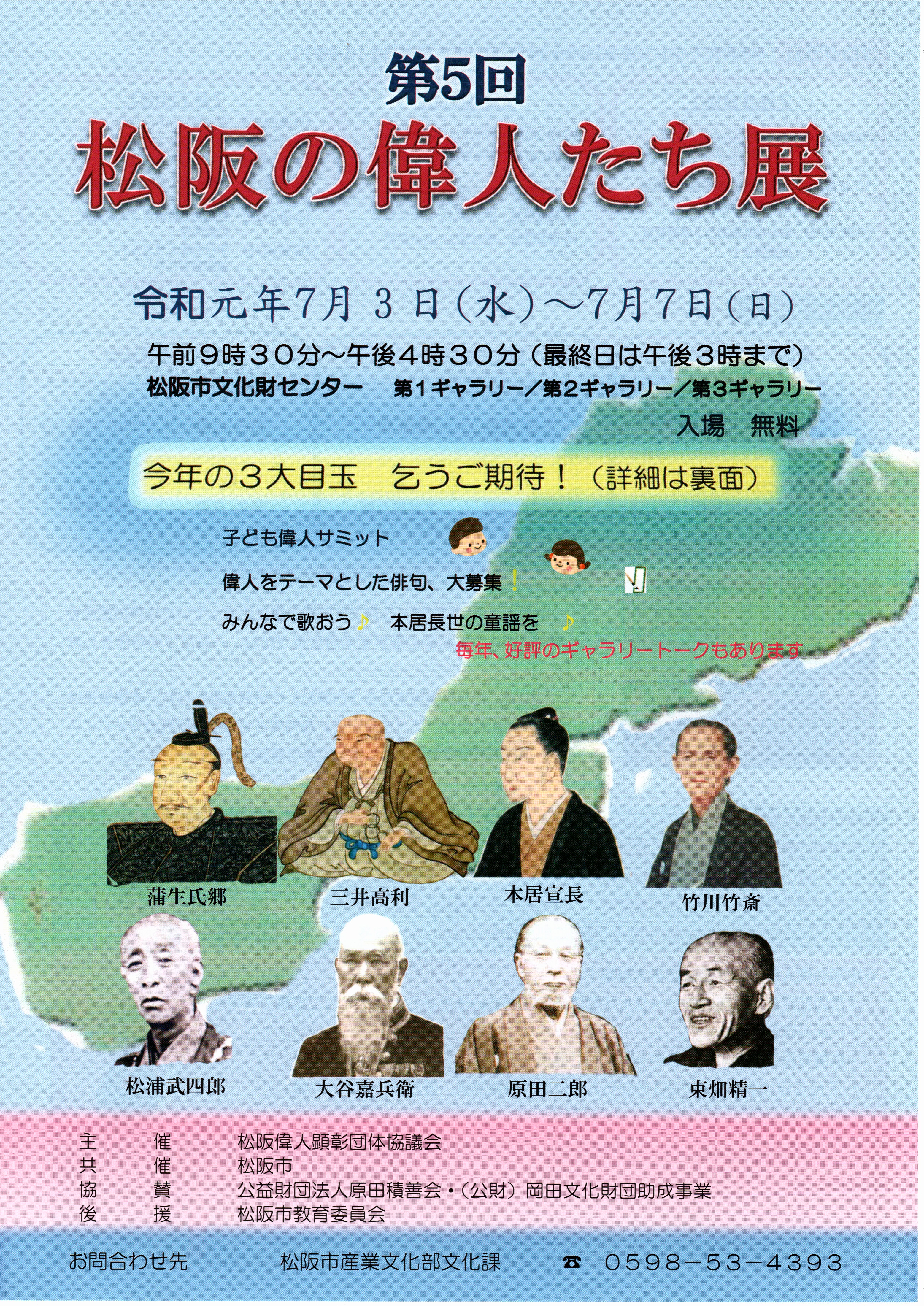 2019年7月3日(水)~7月7日(日)第5回 松阪の偉人たち展