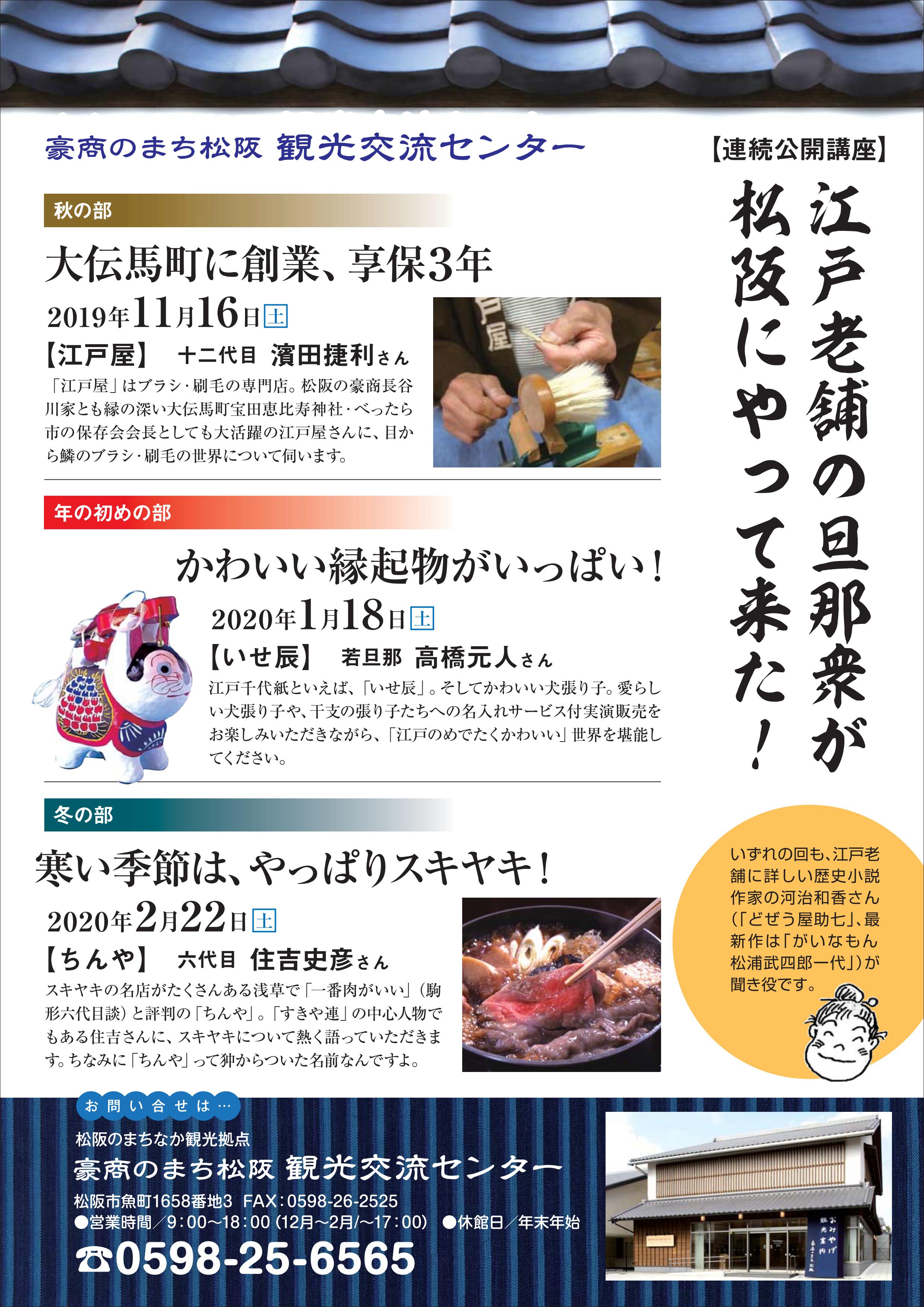 2019年9月1日(日)13:00~14:00「江戸老舗の旦那衆が松阪にやって来た!」を開催します!