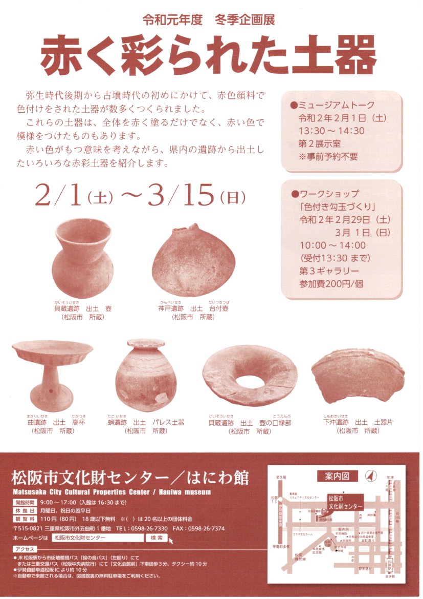 弥生時代後期から古墳時代の初めにかけて、赤色顔料で色付けをされた土器が数多くつくられました。これらの土器は、全体を赤く塗るだけでなく、赤い色で模様をつけたものもあります。赤い色が持つ意味を考えながら、県内の遺跡から出土したいろいろな赤彩土器を紹介します。