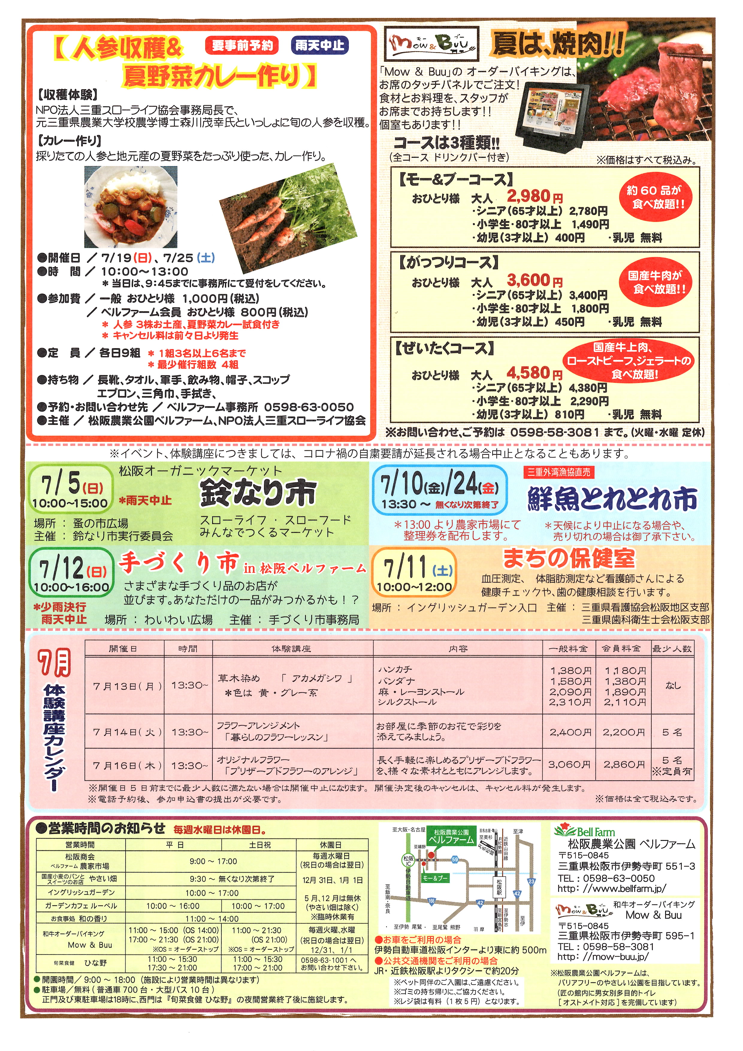 『松阪農業公園ベルファーム情報』2020年 7月号