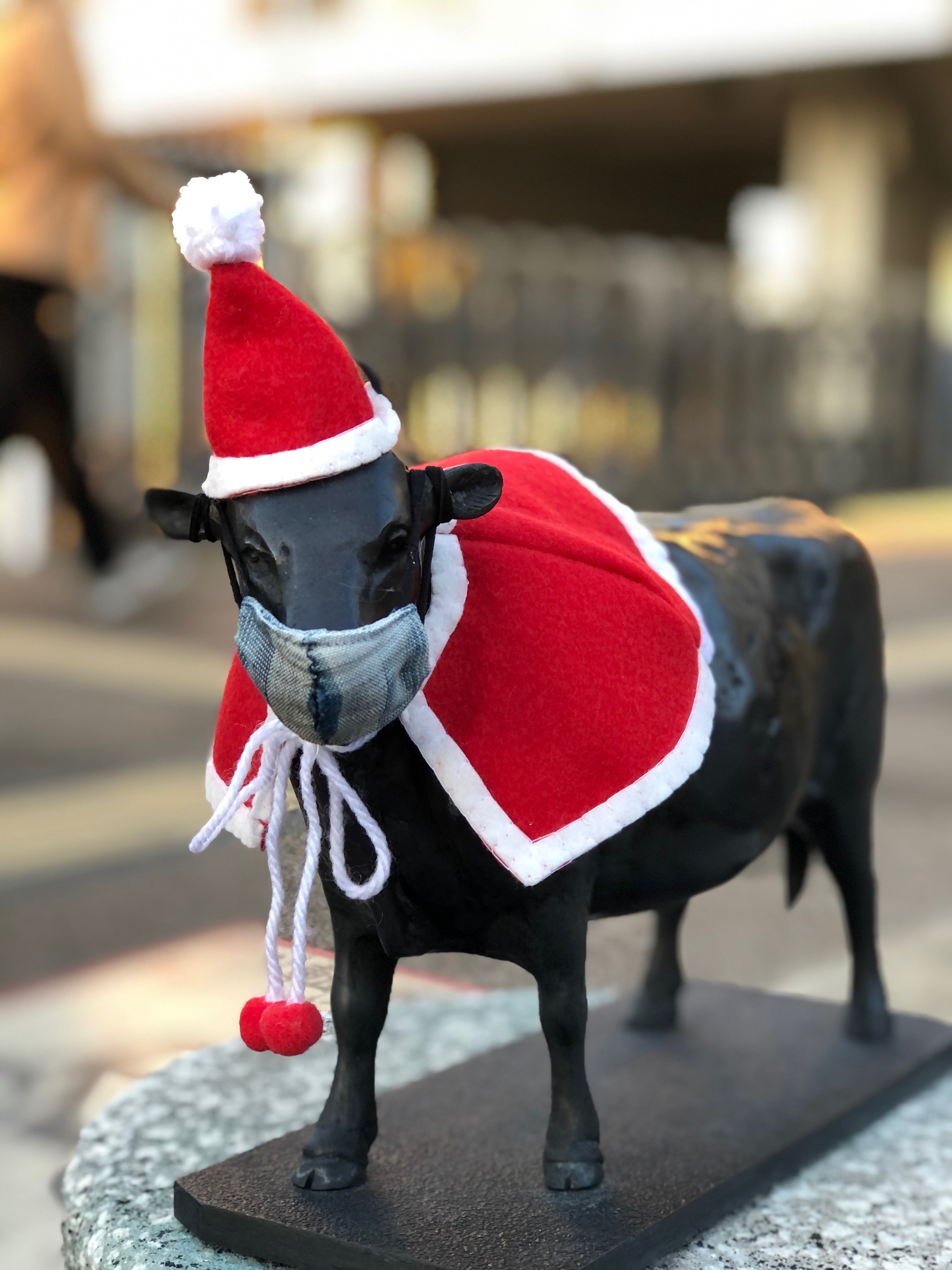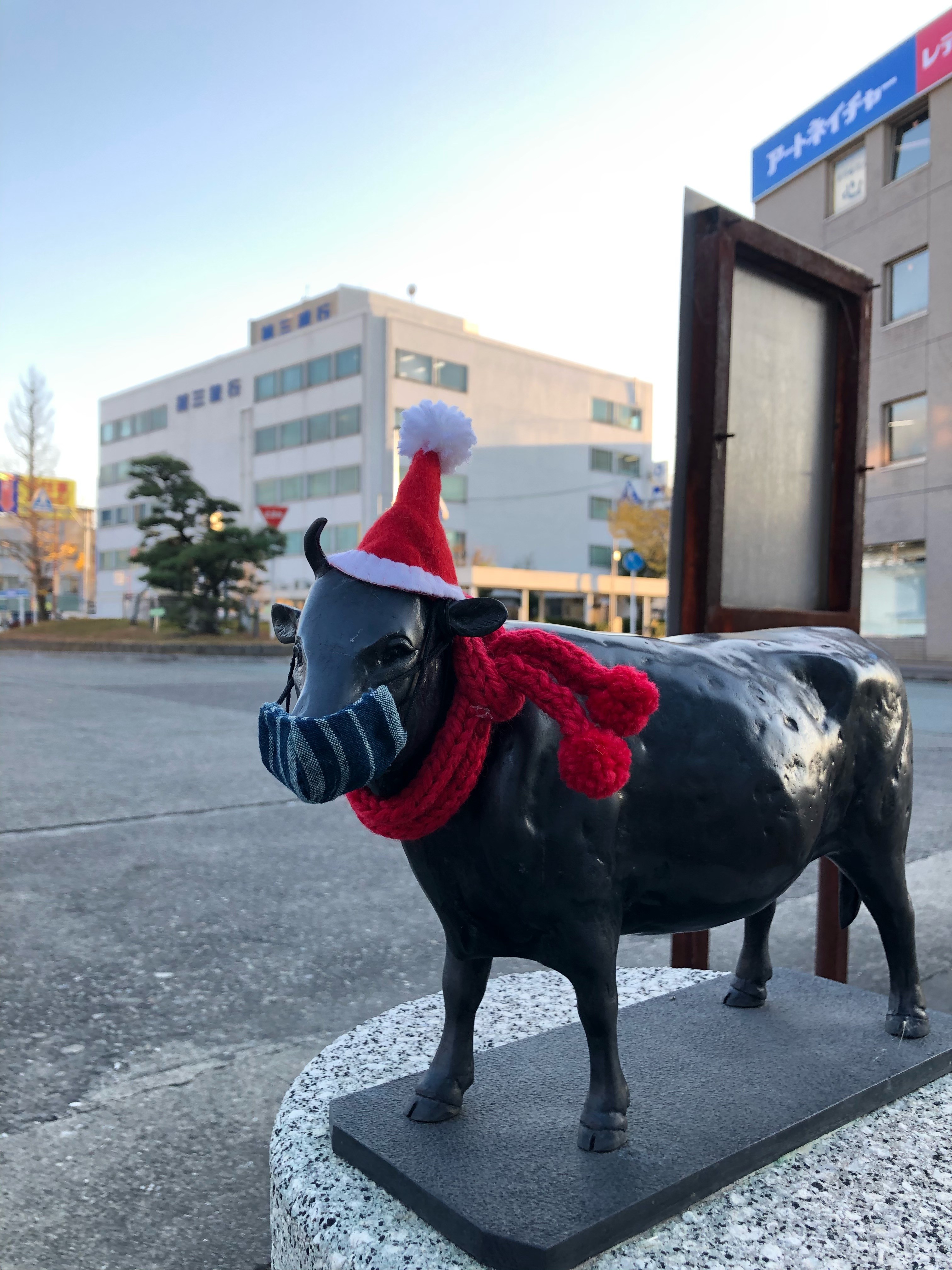 松阪駅前の牛さんがクリスマス仕様になりました。