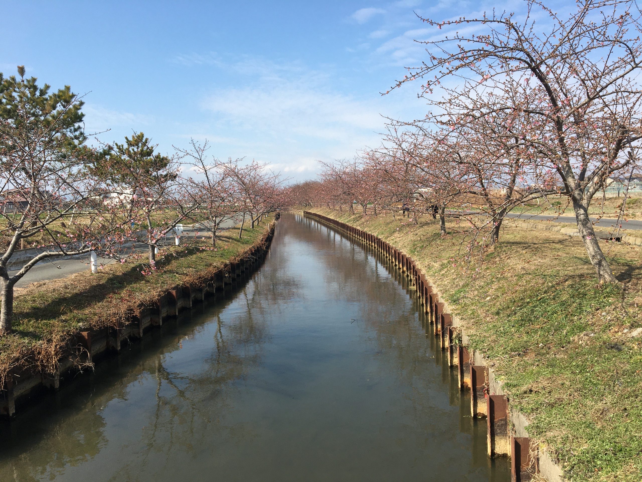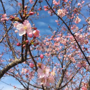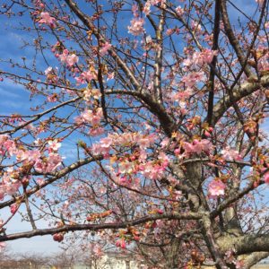 笠松河津桜ロードの開花状況です。
