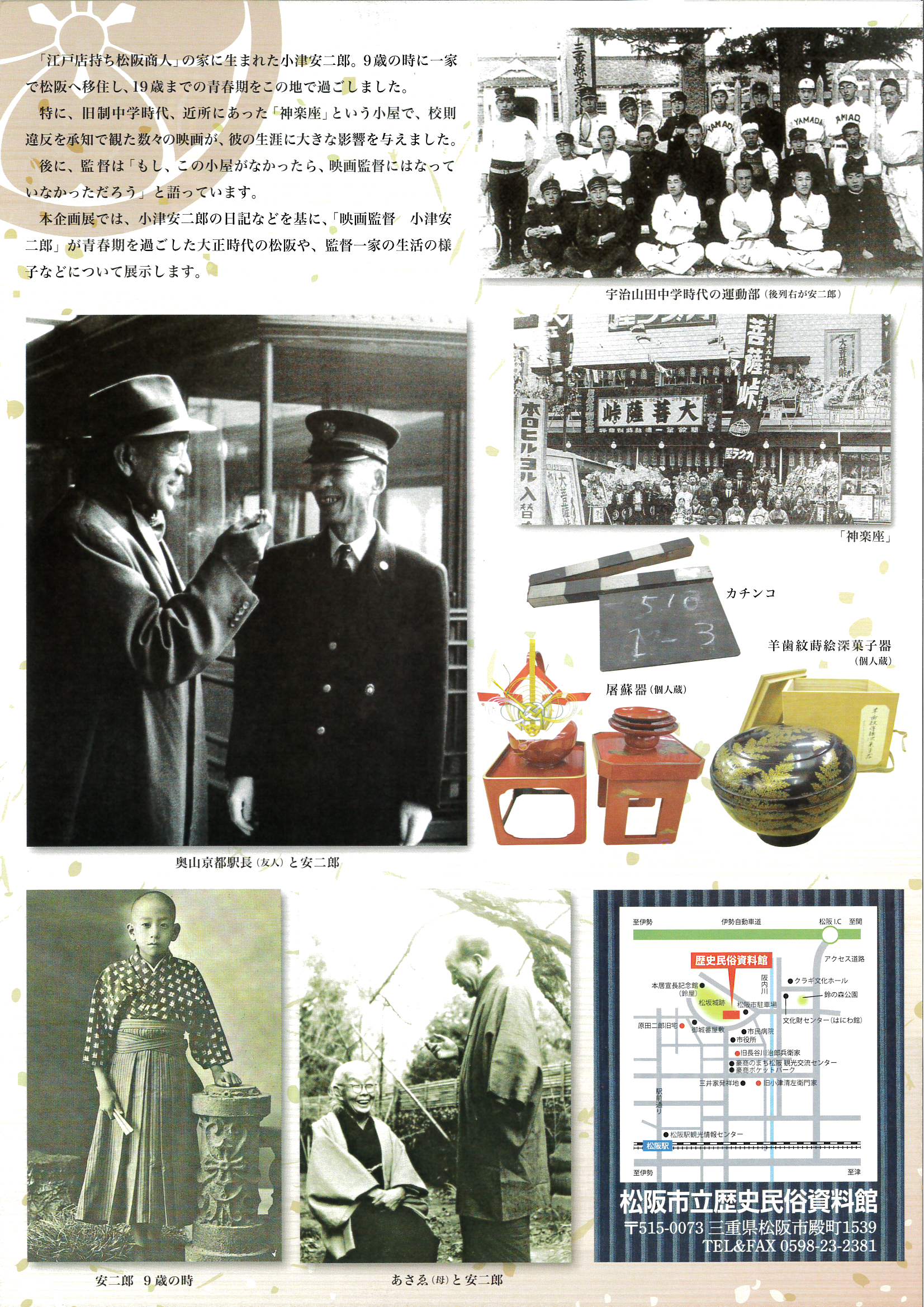 小津安二郎企画展チラシ【PDF】⇒ おもて・うら