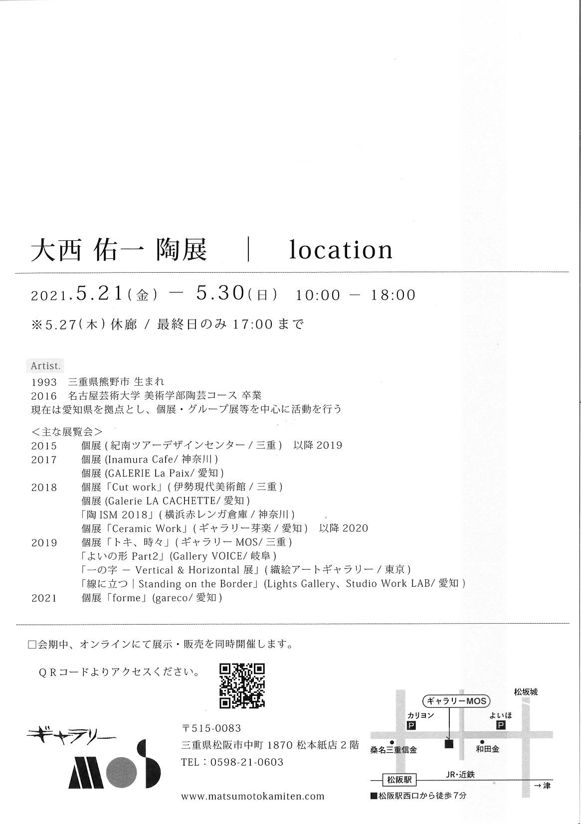 2021年5月21日(金)~5月30日(日) 企画展 大西祐一陶展 location