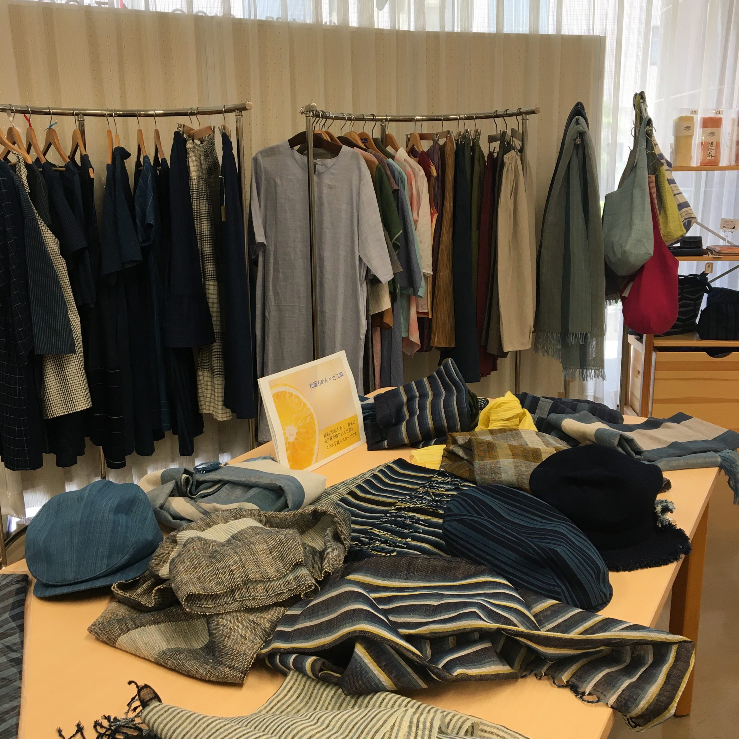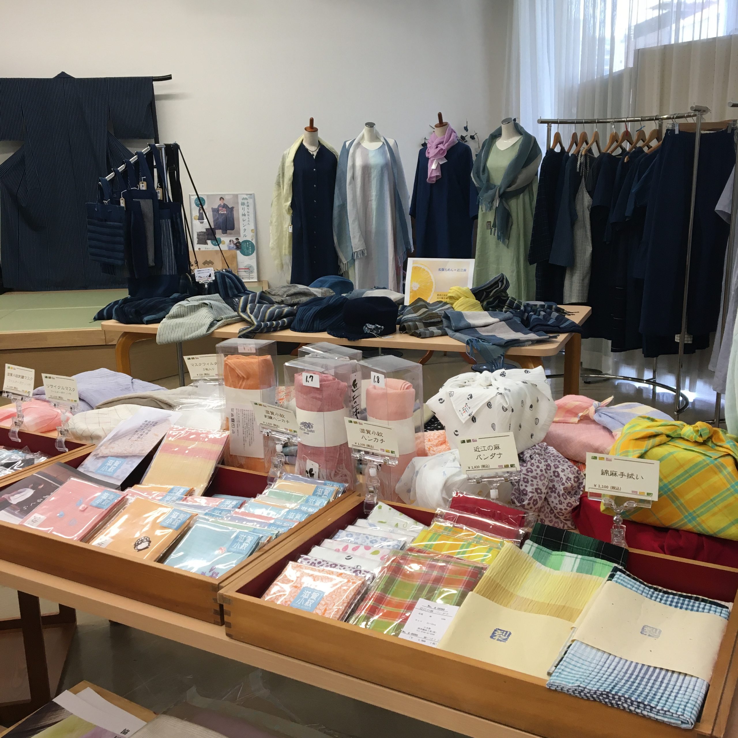他にも、近江麻のワンピース、かばん、布地、小物の販売あり。