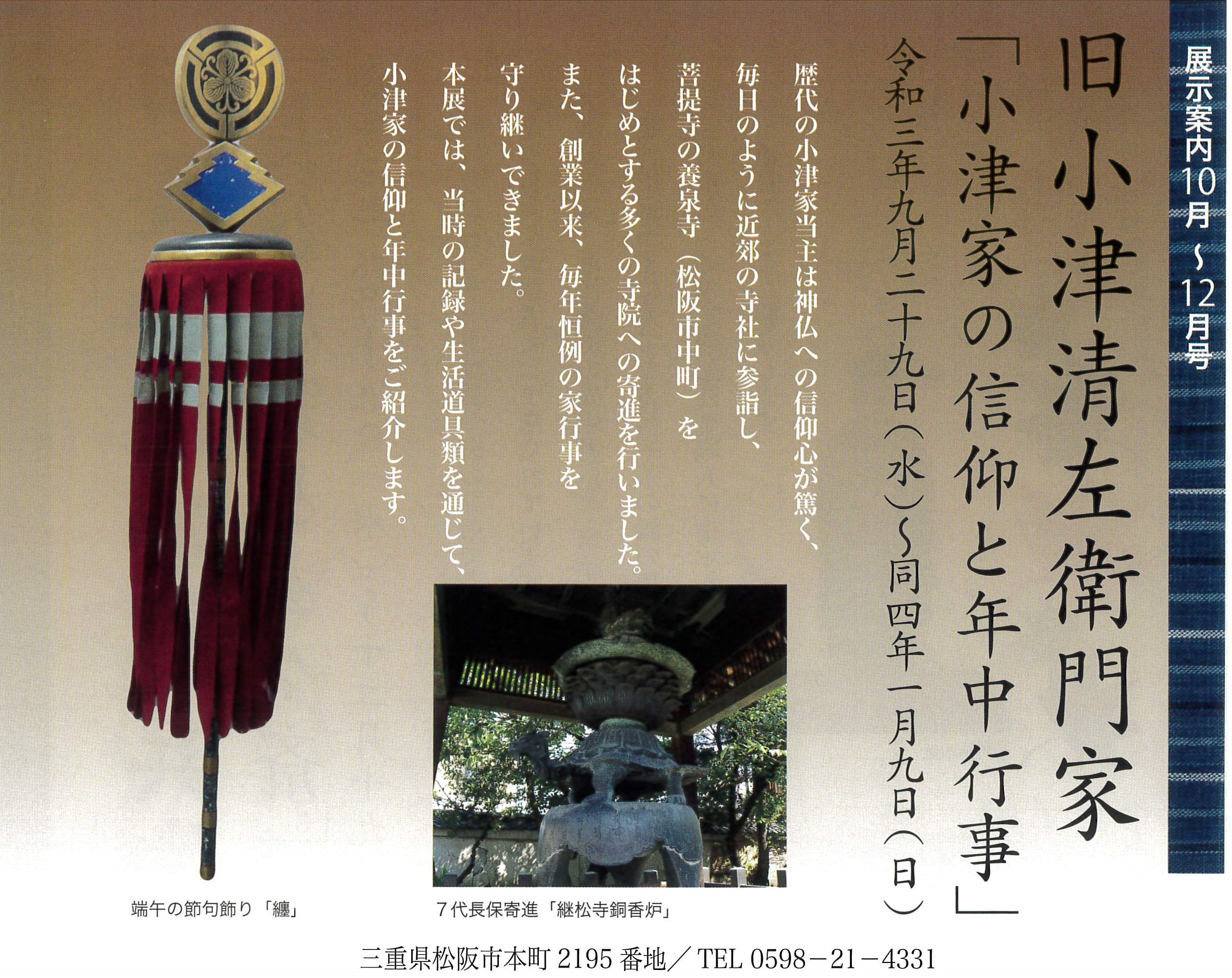 令和3年9月29日(水)~同4年1月9日(日)「小津家の信仰と年中行事」