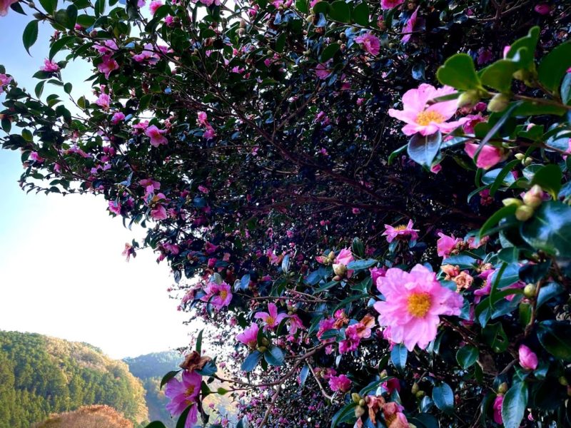 飯南町粥見 サザンカの大木 開花状況 2021/11/25
