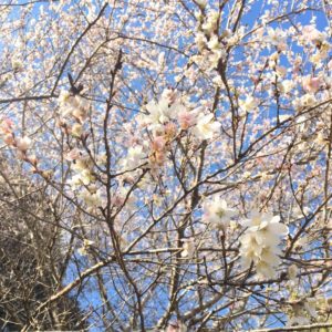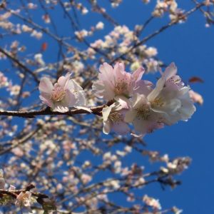 四季桜は、ヒガンザクラの一種で、白や淡紅色で、八重咲きのものと、一重のものがあり、