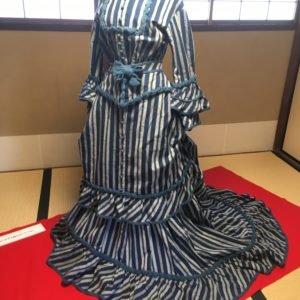 刺繍振袖1点、屏風2点、松阪産の手織り反物3点、バッスルドレス1点、造花1点