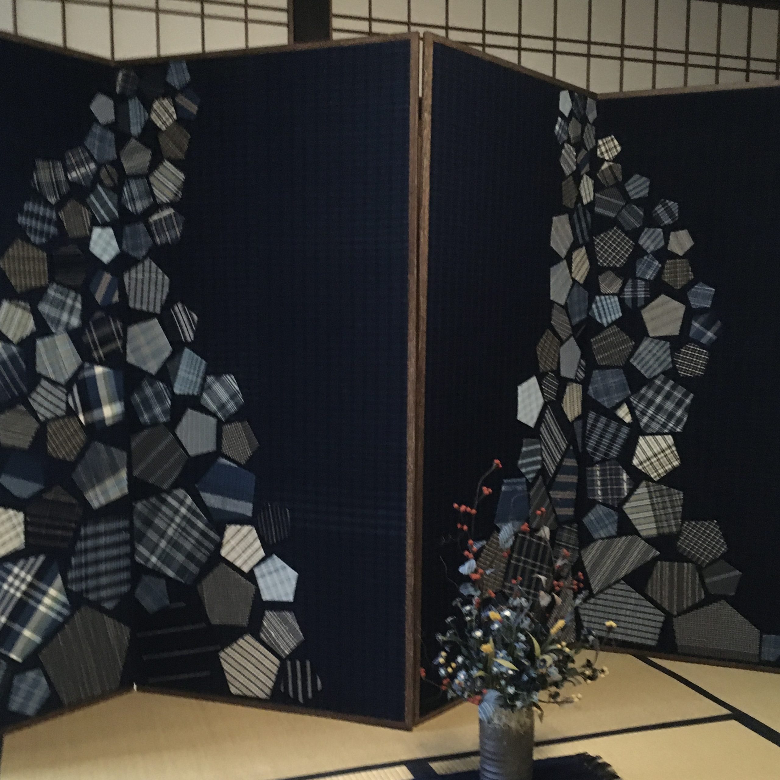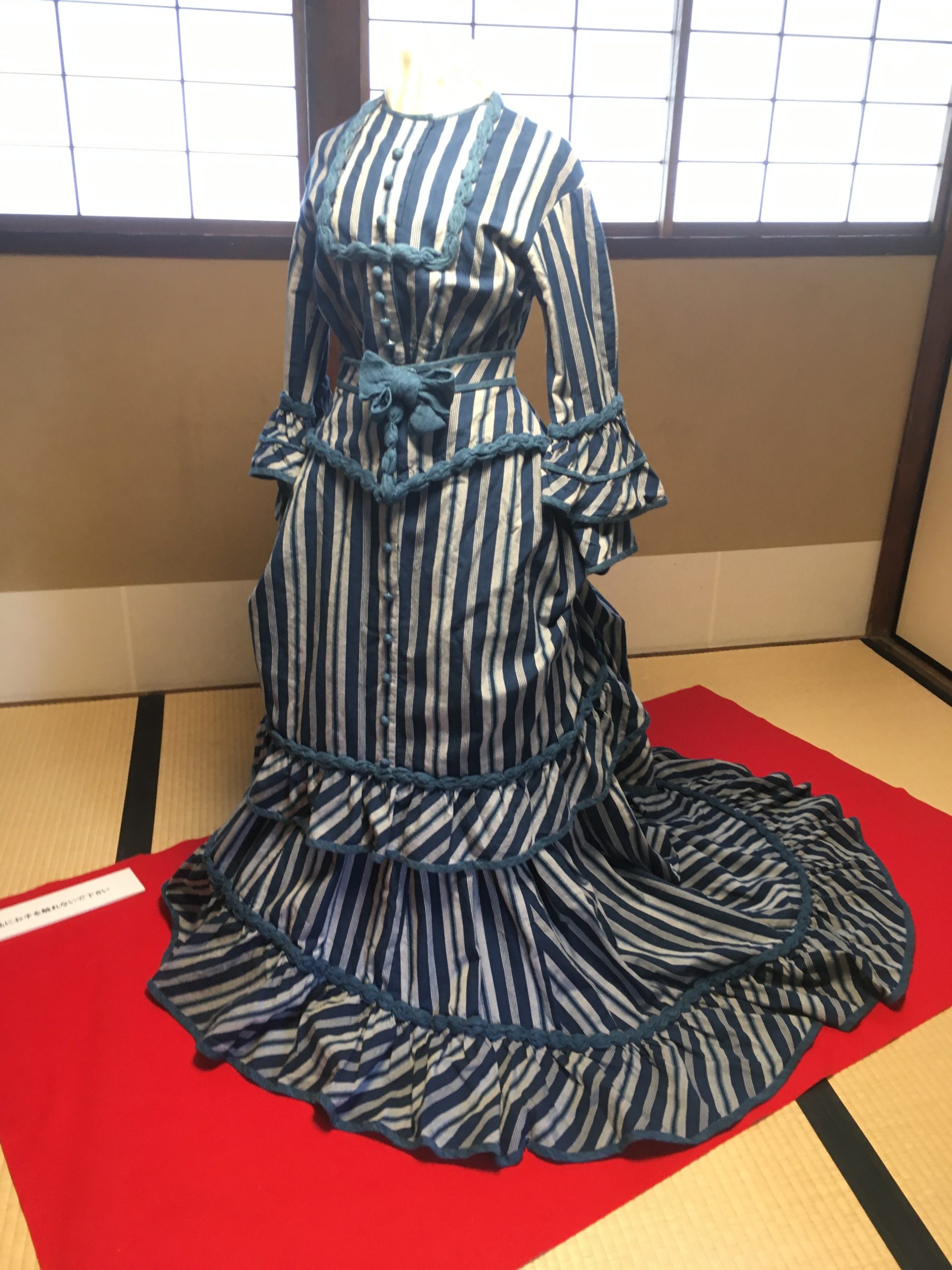 刺繍振袖1点、屏風2点、松阪産の手織り反物3点、バッスルドレス1点、造花1点