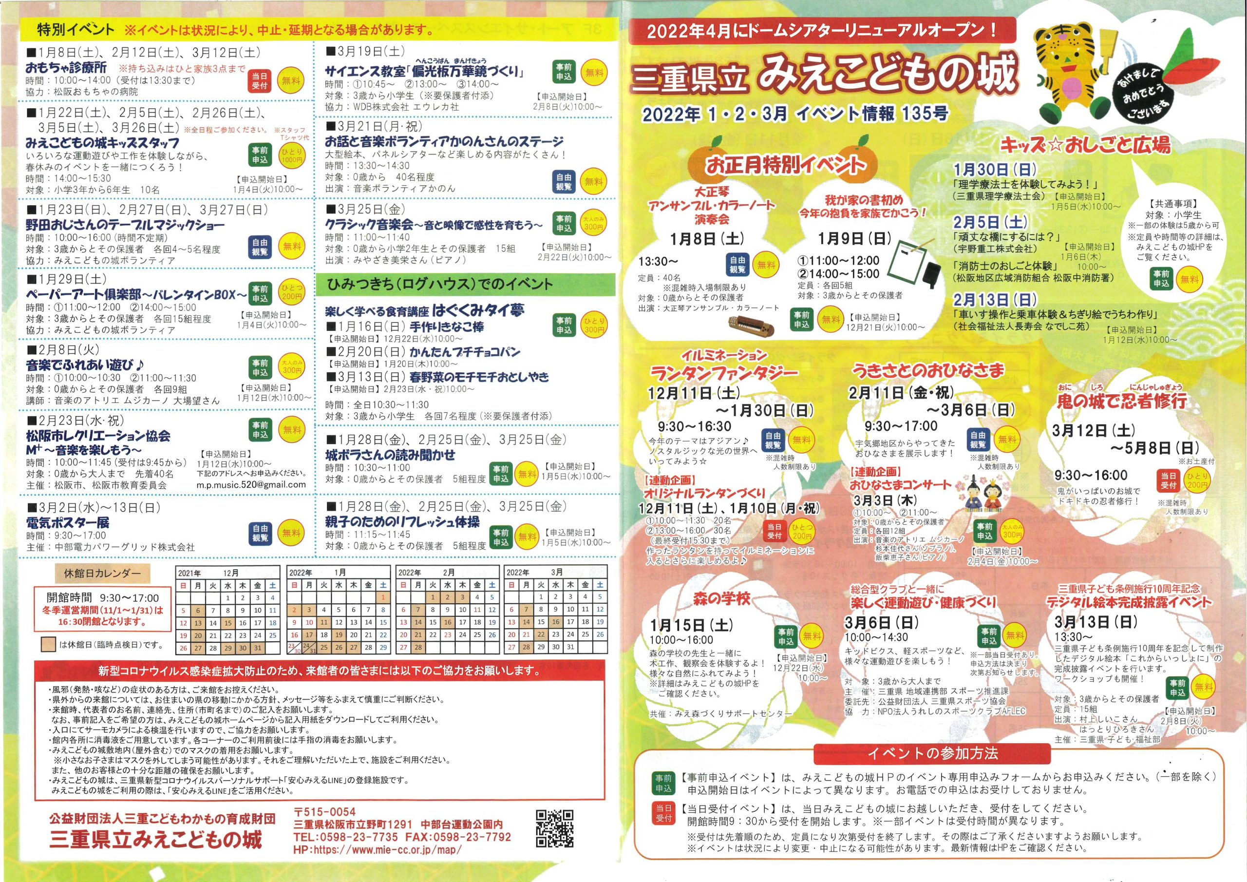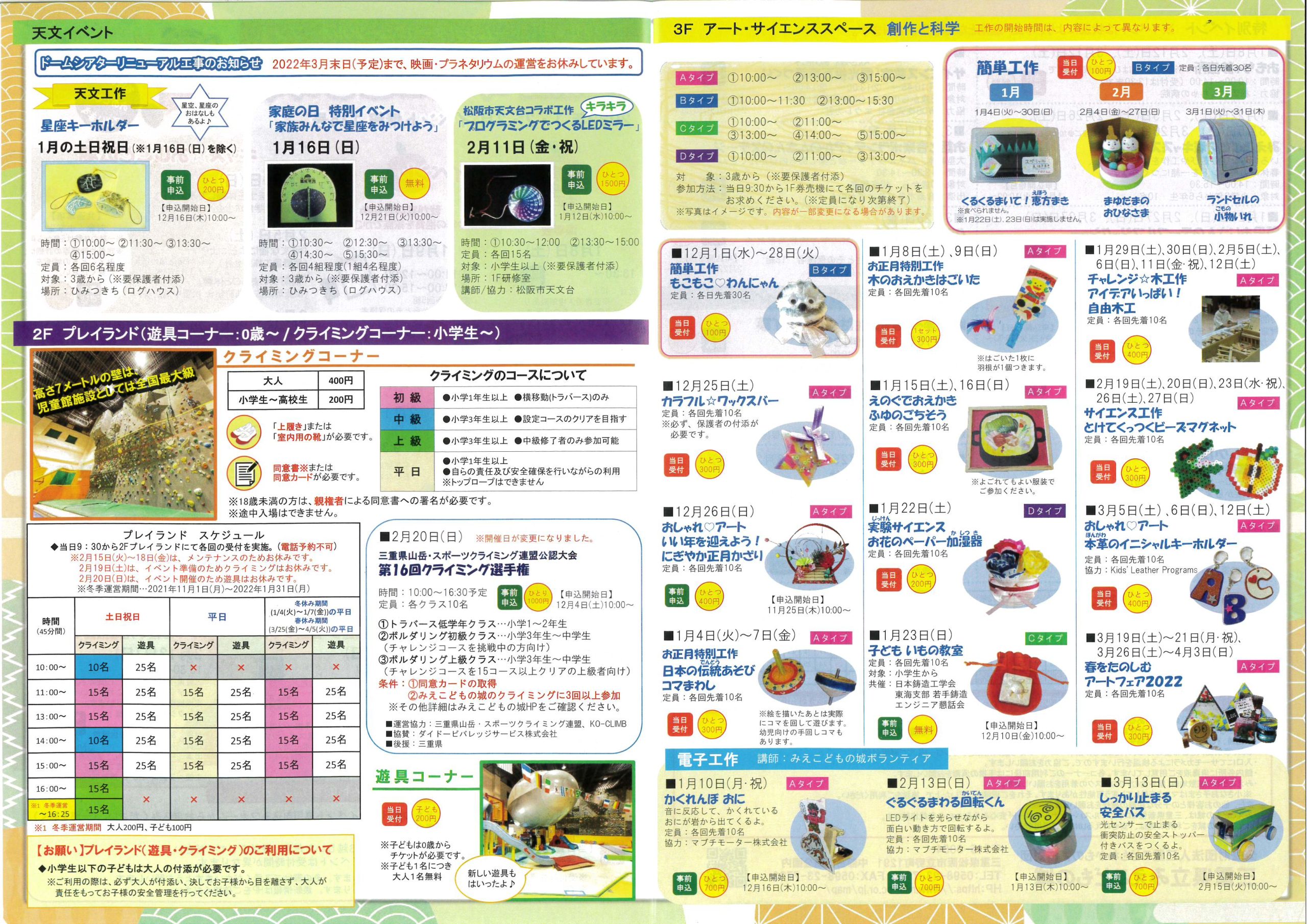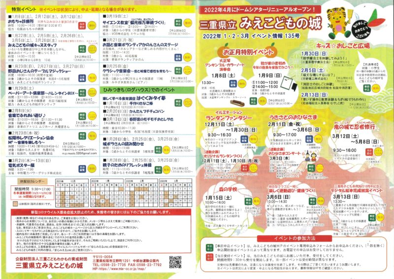 三重県立みえこどもの城 2022年1・2・3月 イベント情報