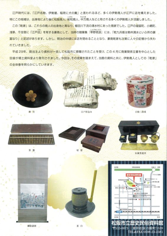 松阪市立歴史民俗資料館 企画展【伊勢商人 乾家 ~歴史に埋もれた商家の記憶~】