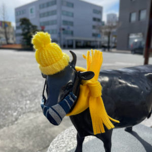 JR松阪駅前の牛さん 冬季仕様になりました!