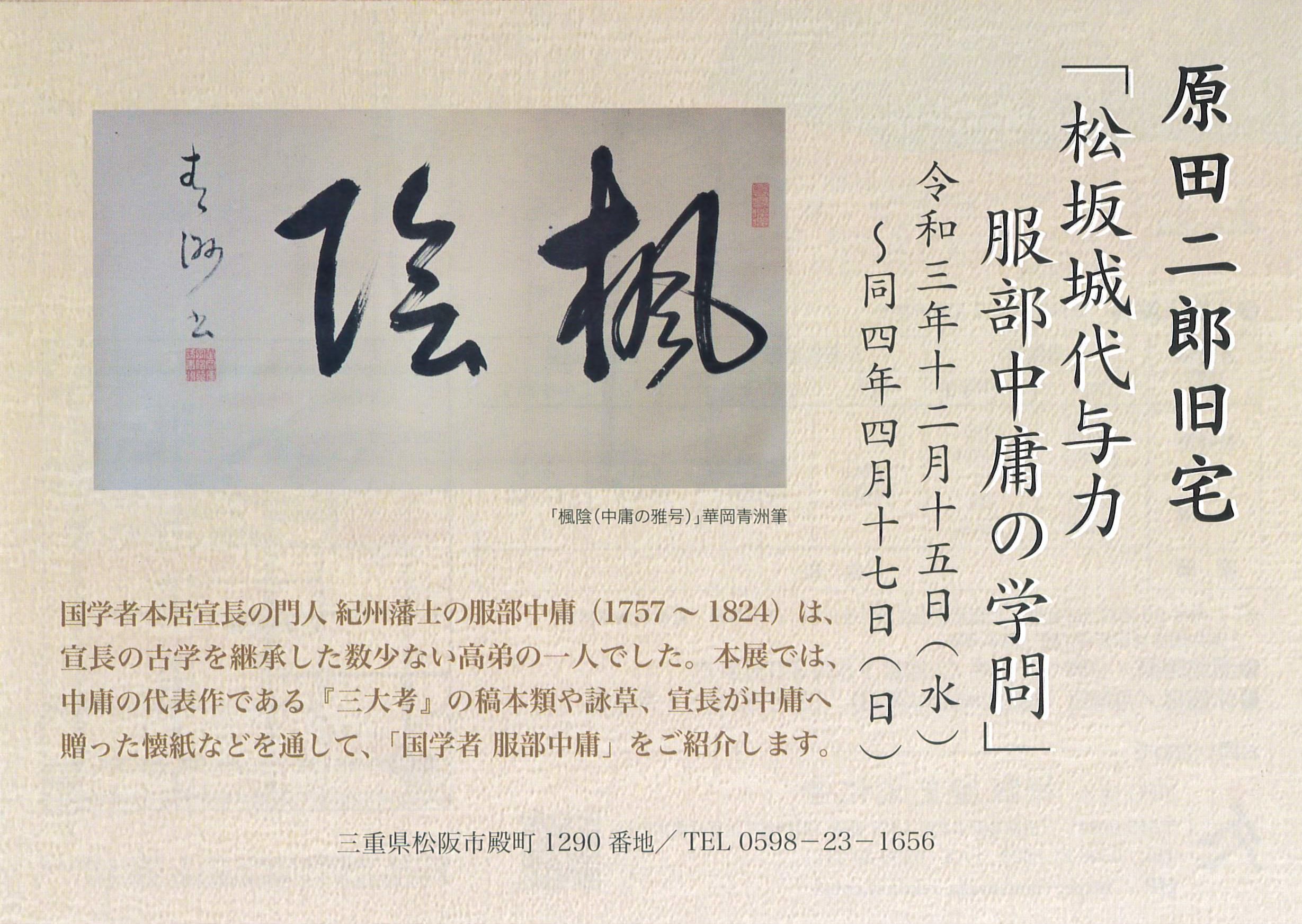 令和3年12月15日(水)~令和4年4月17日(日)松坂城代与力 服部中庸の学問  原田二郎旧宅