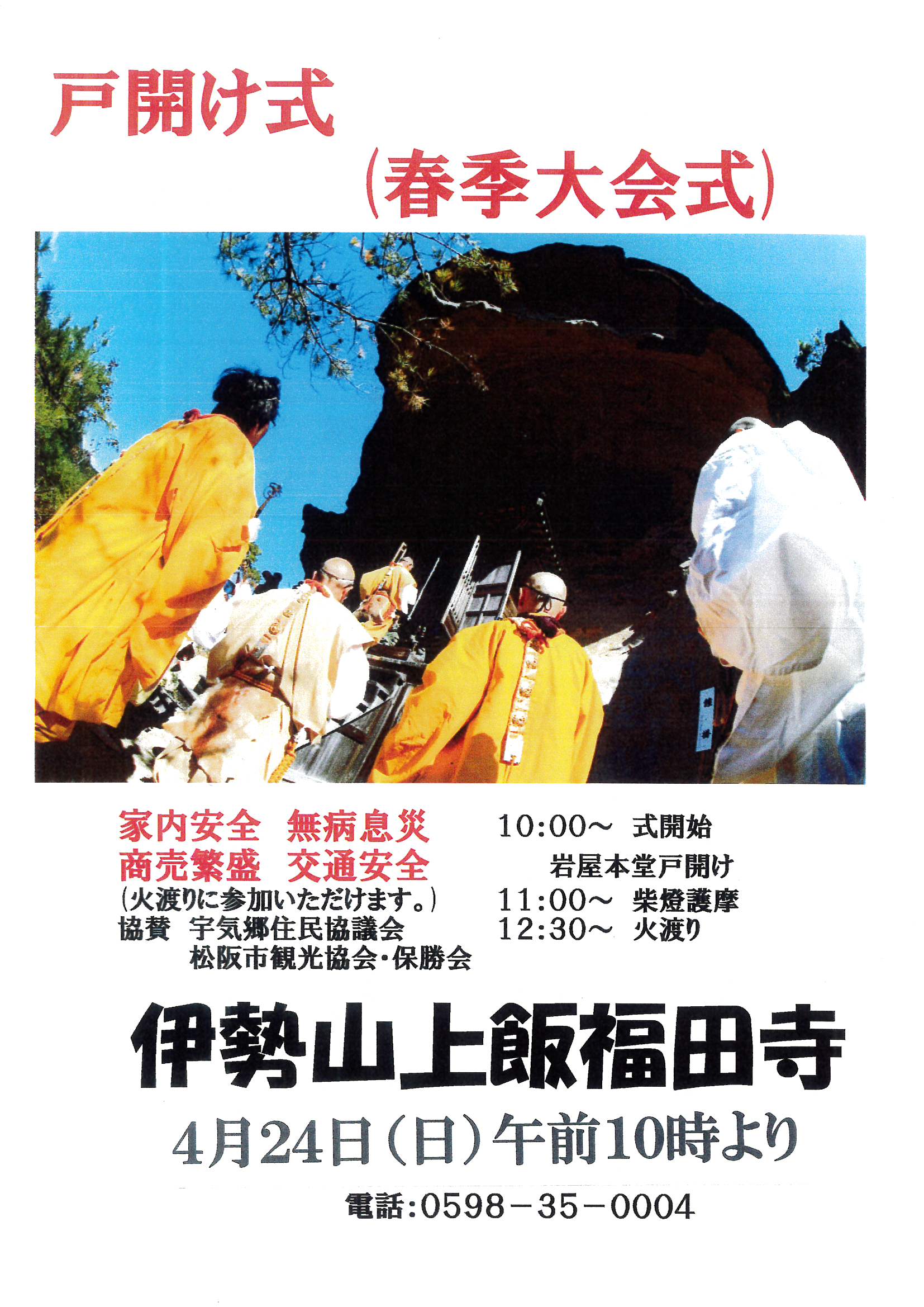伊勢山上飯福田寺 戸開け式(春季大会式)PDF→チラシ