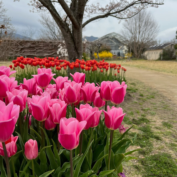 4月には23品種約6400球のチューリップが品種により順に咲き始めます❣️