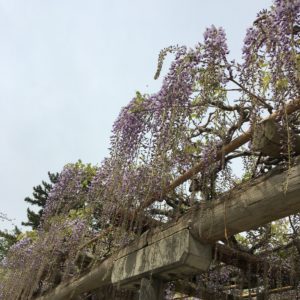 松坂城跡(二の丸跡)では、桜が終わり、藤が咲き始めました。(撮影:2022年4月19日)