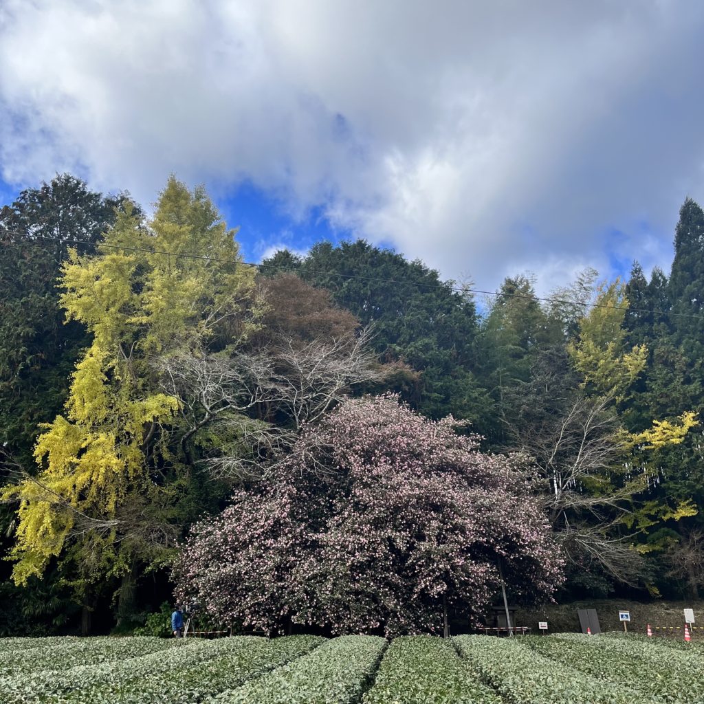 飯南町粥見にあるサザンカの大木は、推定樹齢150年以上、高さ約12メートル、幹まわりは約1.5メートル、直径約10メートル程に枝を広げています。