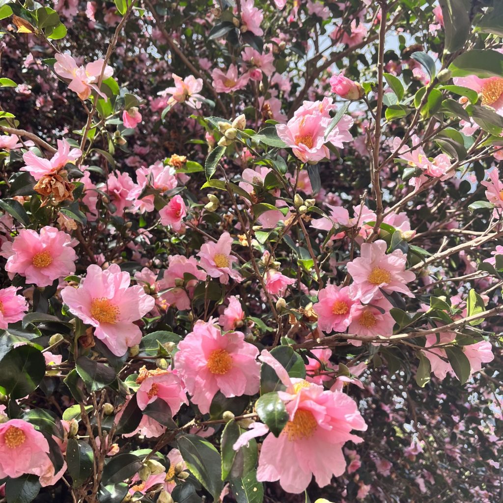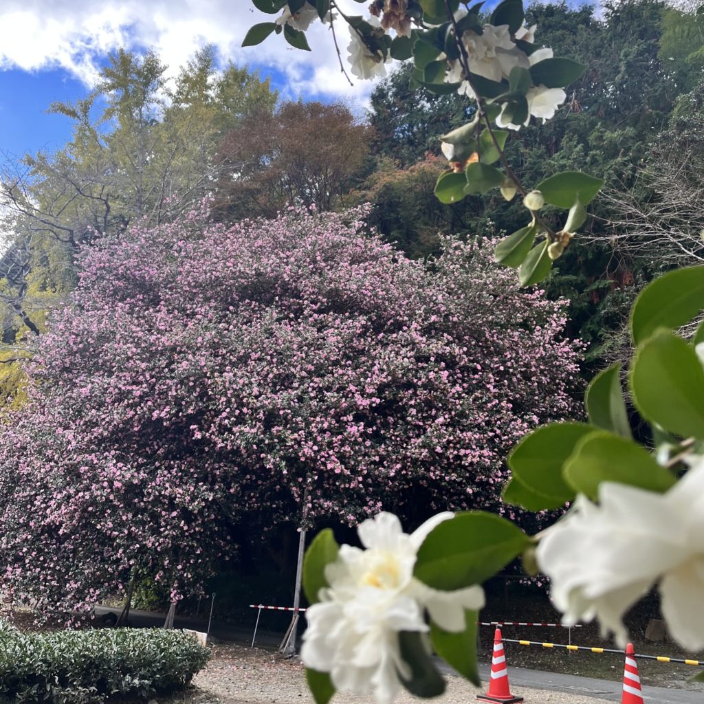 飯南町粥見 サザンカの大木 開花状況 2023/11/25