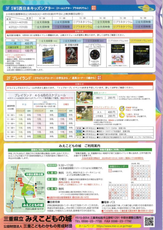 詳しくは、こちら「三重県立みえこどもの城」ホームページへ