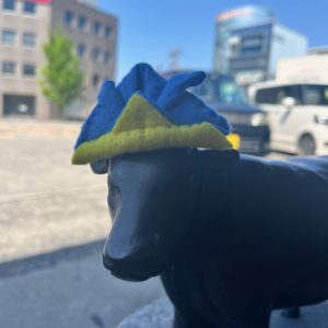 松阪駅前の牛さんが、八十八夜、こどもの日に向けて変身中!