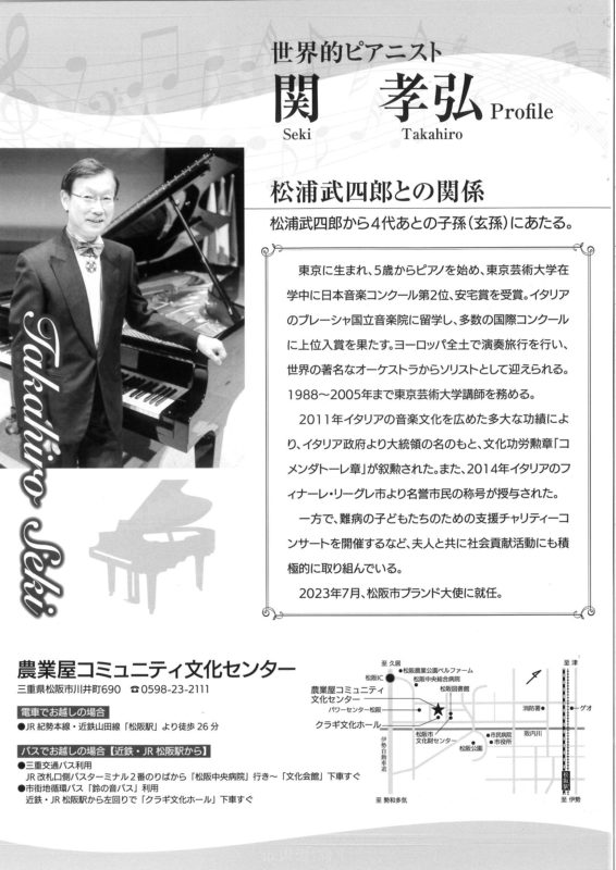 関 孝弘 ピアノリサイタル 2024.6.23㈰ 開演14時(開場 13時15分)終演 16時