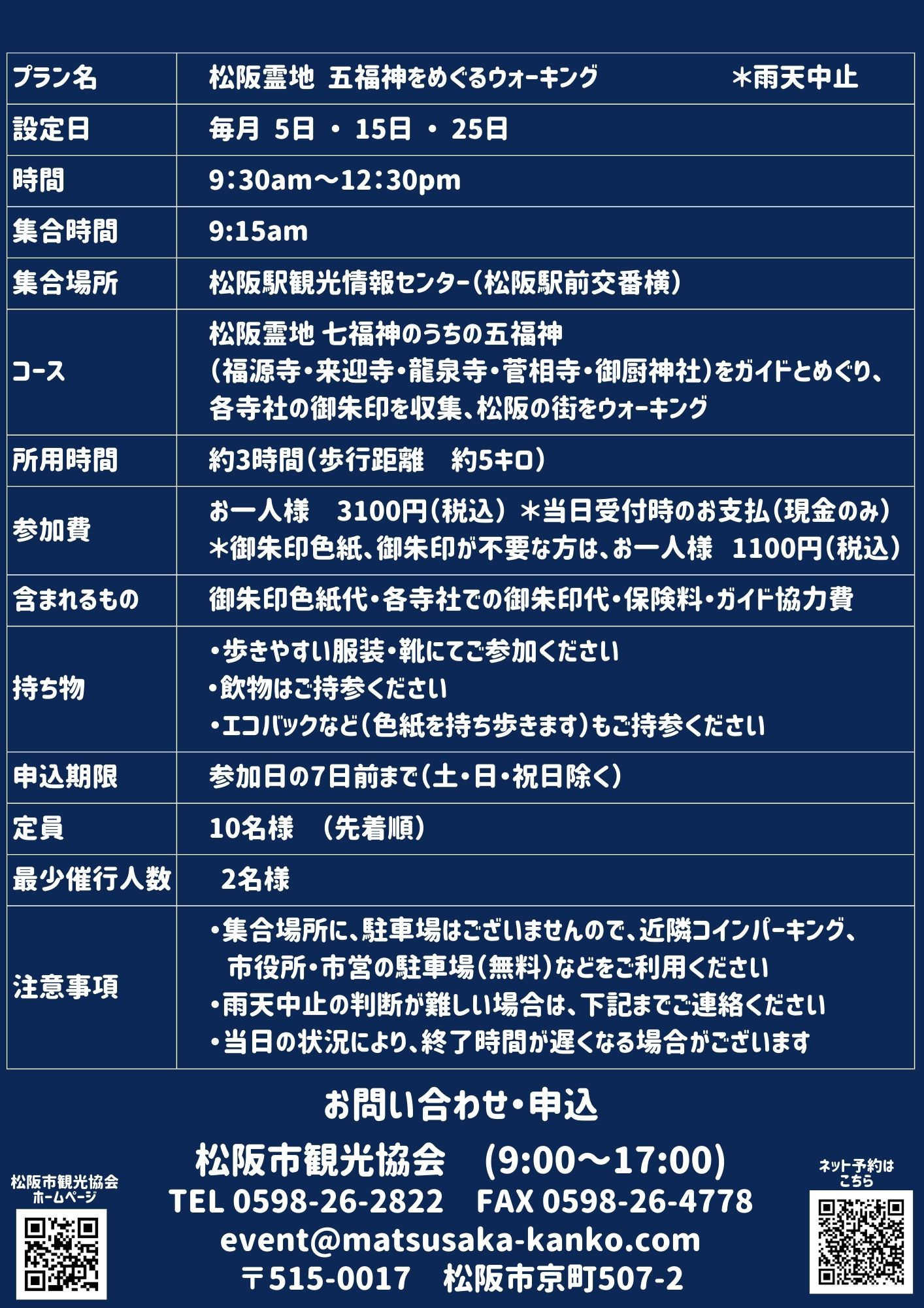 毎月 "5"がつく日開催 松阪霊地 五福神をめぐるウォーキングツアー