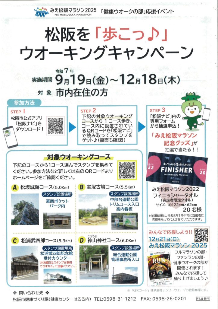 ~みえ松阪マラソン2025「健康ウオークの部」応援イベント~ 『松阪を「歩こっ♪」ウオーキングキャンペーン』