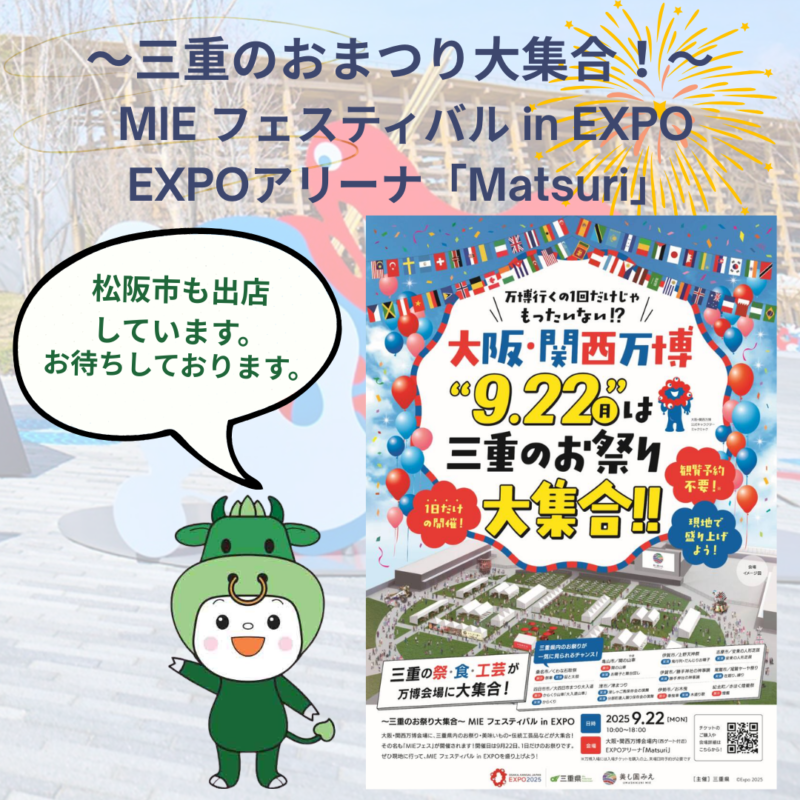 【終了しました】〜三重のおまつり大集合!〜MIEフェスティバルinEXPO 2025年9月22日(月) 10:00~18:30(入場は18:00まで)