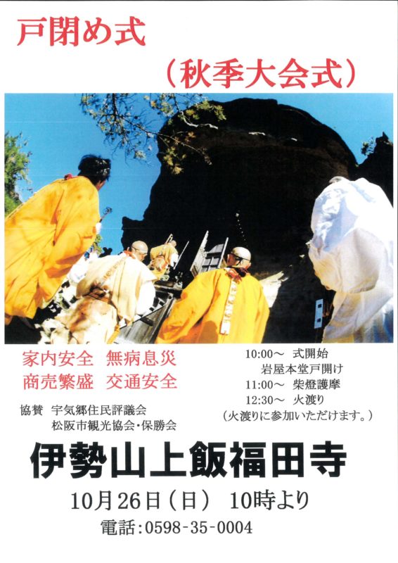 【終了しました】戸閉め式 (秋季大会式)伊勢山上飯福田寺 10月26日(日) 10時より