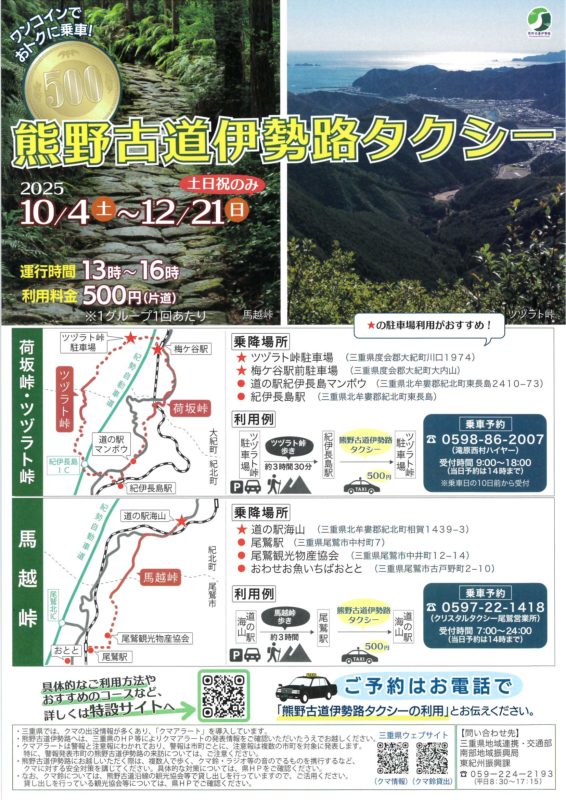 熊野古道伊勢路タクシー 2025年10月4日~12月21日※土日祝のみ