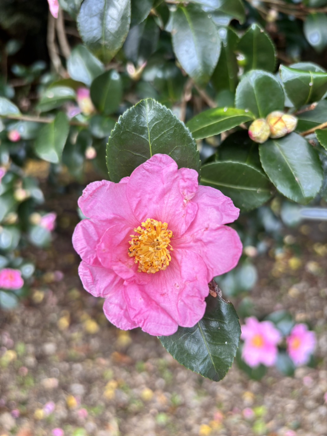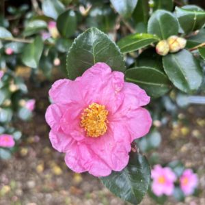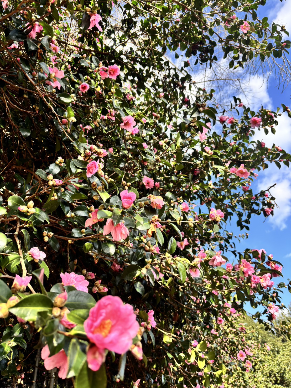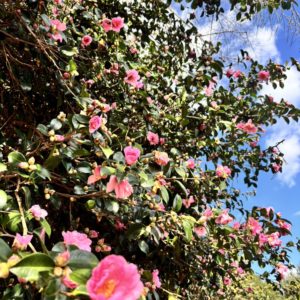 サザンカの開花は進みしていますが、まだ木全体がピンク色にはなっていません。