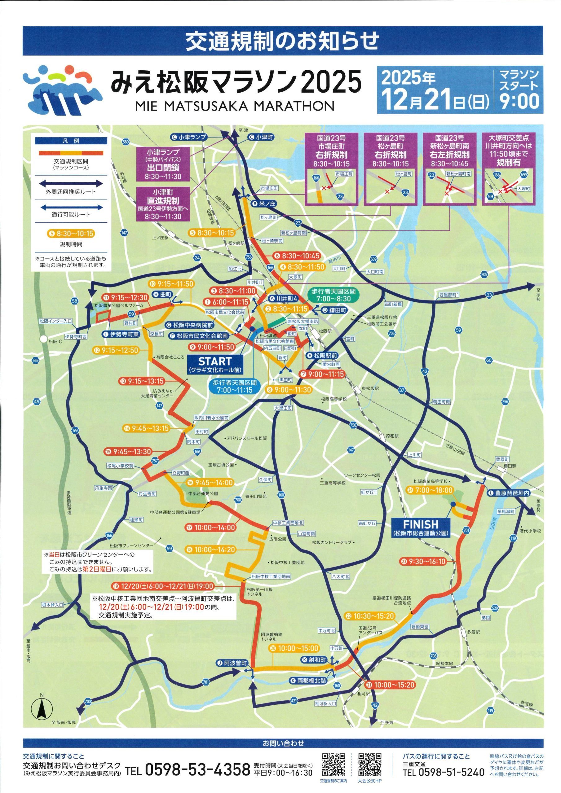 12月21日(日)は「みえ松阪マラソン2025」開催のため、市内道路において交通規制が実施されます。